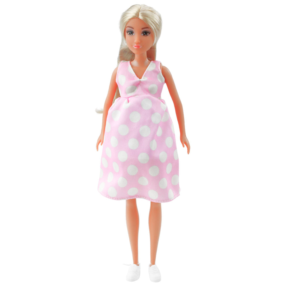 Nėščia lėlė Anlily su taškuota rožinė suknelė ir kūdikiu