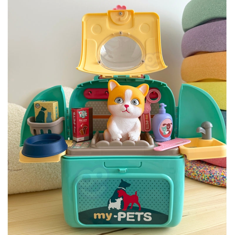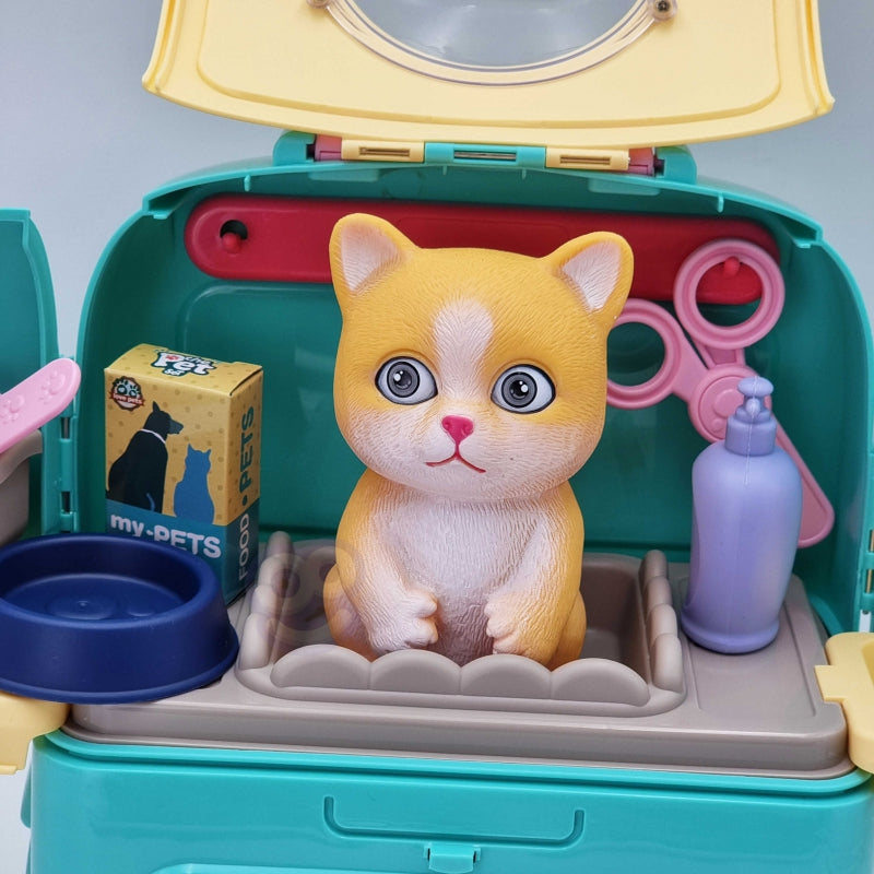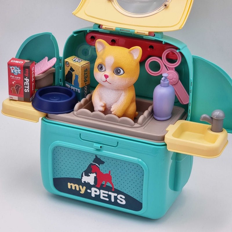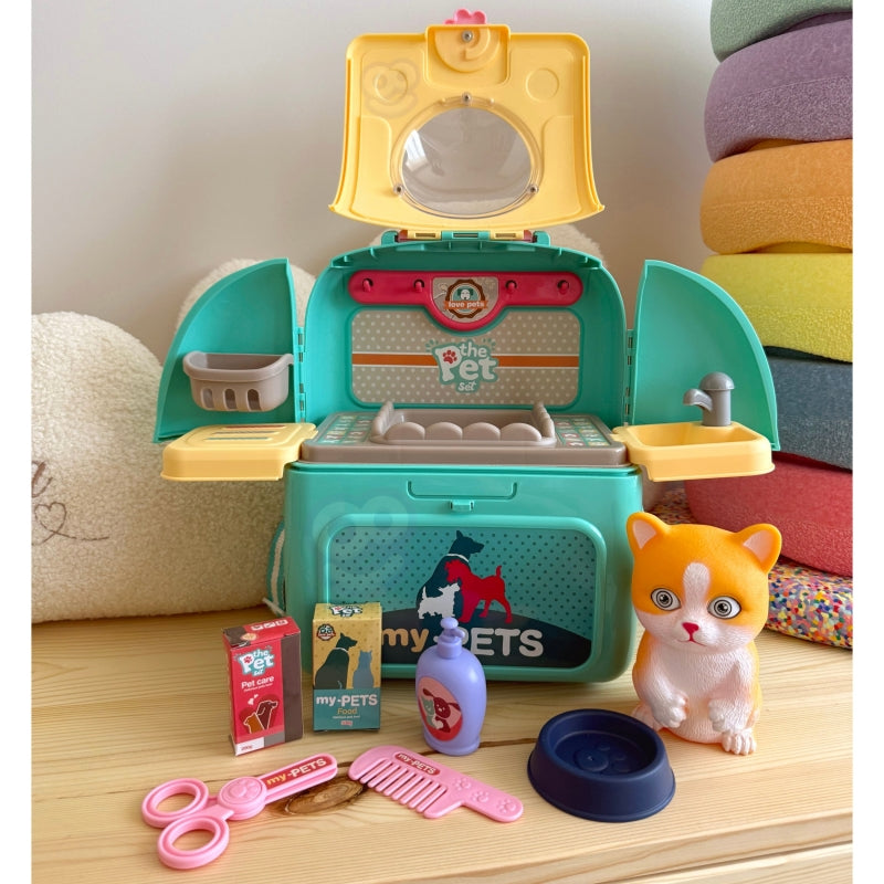 Nešiojamasis gyvūnų priežiūros rinkinys leis jūsų vaikui pasirūpinti savo mėgstamiausiu augintiniu. Patogioje nešiojamoje kuprinėje galite pasiimti savo katę bet kur: į kelionę, žaidimų aikštelę ar į darželį. Vaidindamas veterinaro vaidmenį vaikas lavina vaizduotę ir atsakomybės jausmą. Gali būti, kad šis žaislas taps pradžia ugdyti aistrą ir susidomėjimą veterinaro ar gyvūnų stilisto profesijai