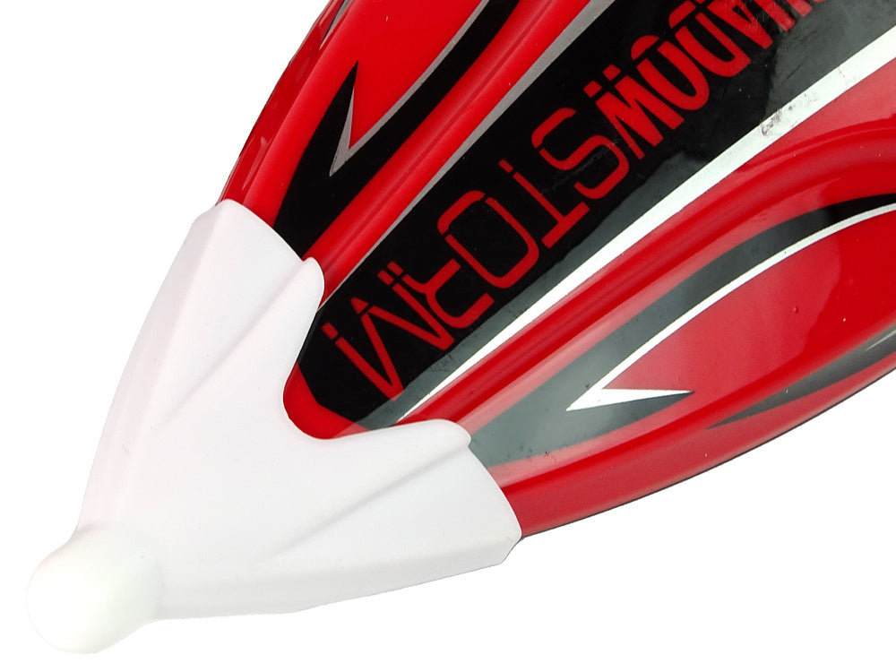 Nuotoliniu būdu valdoma motorinė valtis, raudonas