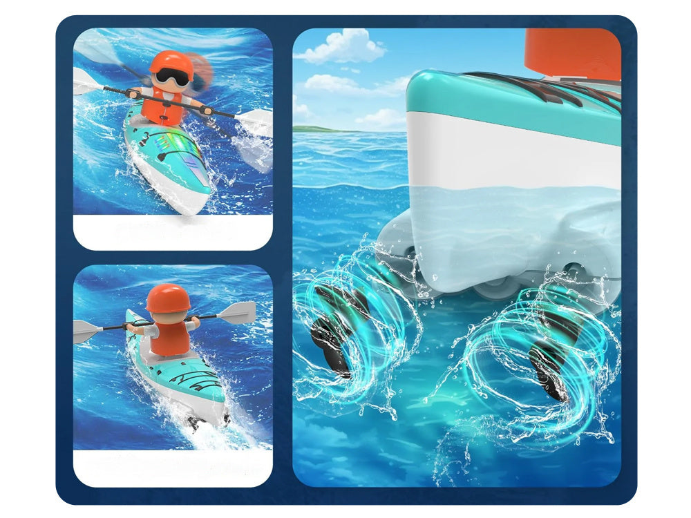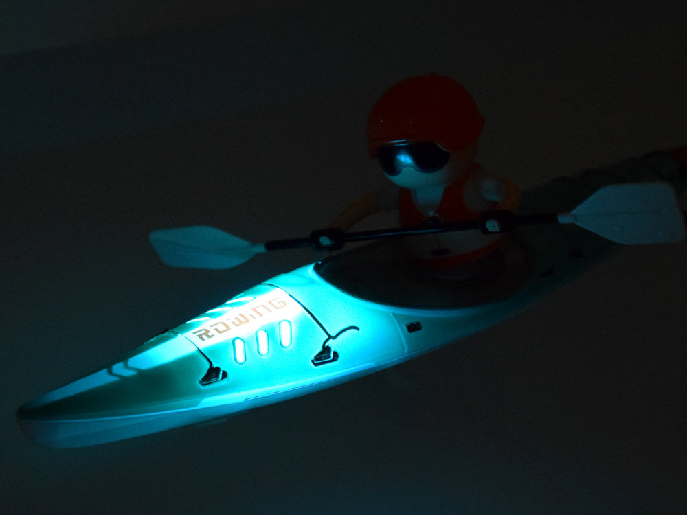 Nuotoliniu būdu valdoma baidarė su irklu - puikus žaislas mažiesiems vandens nuotykių mėgėjams! Įrengtas nuotolinio valdymo pultelis leidžia valdyti baidarės kryptį, todėl galite visiškai kontroliuoti pramogas. Be to, baidarė turi ryškų apšvietimą, kad sutemus būtų dar smagiau.