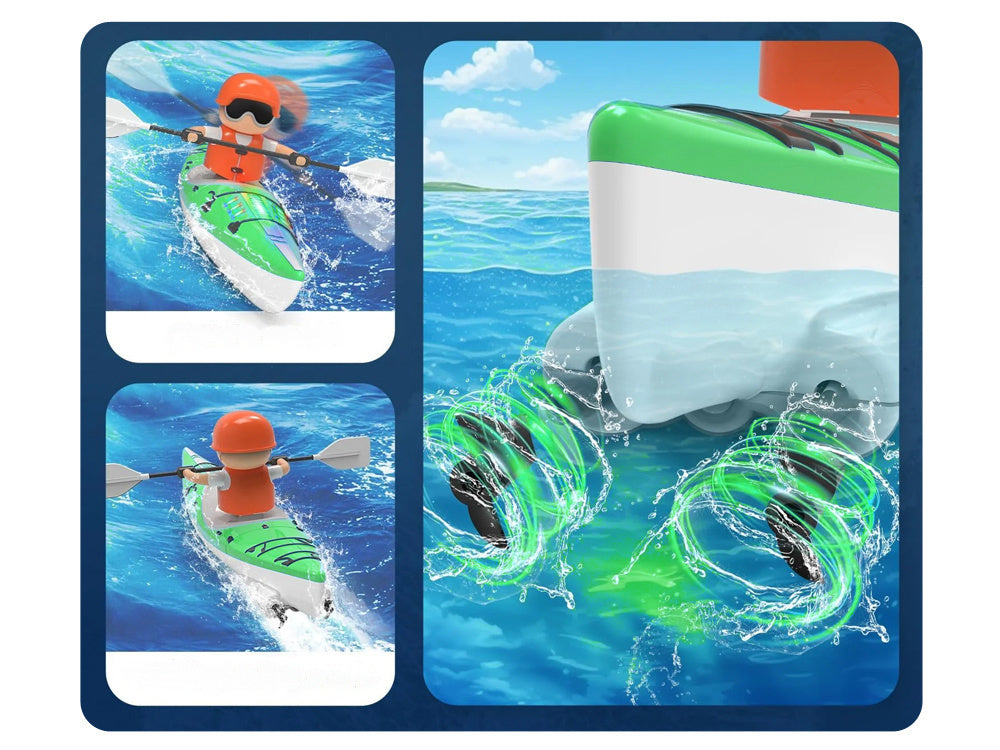 Nuotoliniu būdu valdoma baidarė su irklu - puikus žaislas mažiesiems vandens nuotykių mėgėjams! Įrengtas nuotolinio valdymo pultelis leidžia valdyti baidarės kryptį, todėl galite visiškai kontroliuoti pramogas. Be to, baidarė turi ryškų apšvietimą, kad sutemus būtų dar smagiau.