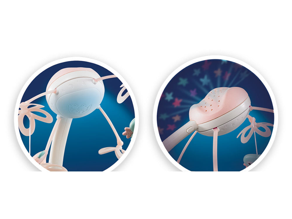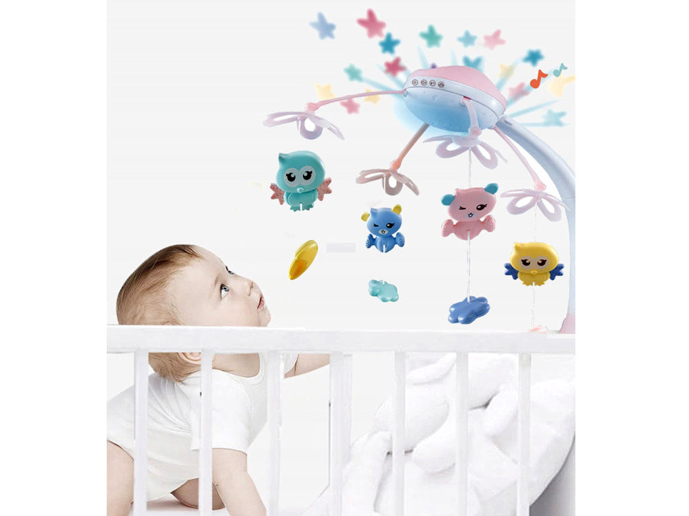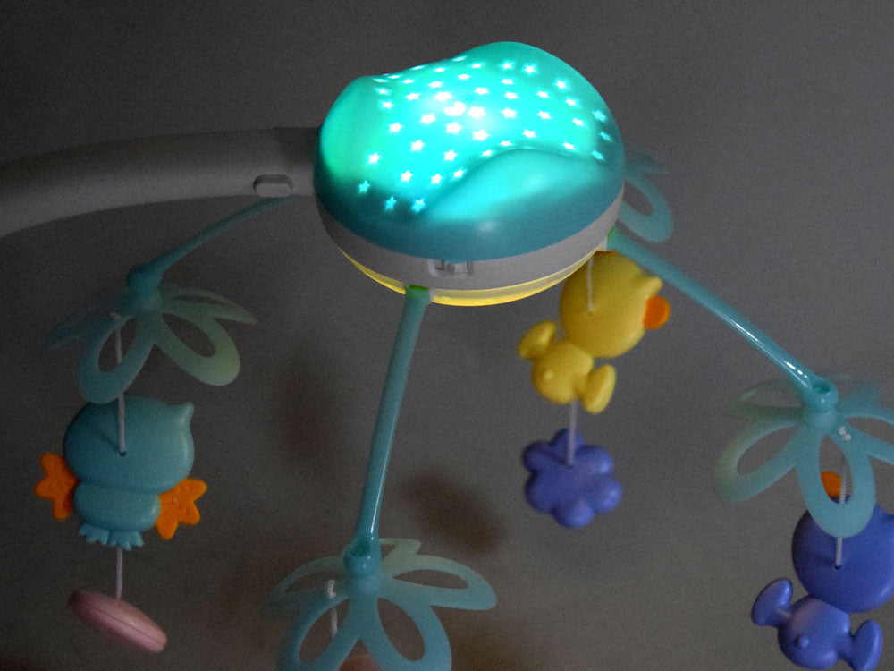 Karuselė su šviesos ir garso efektais, valdoma nuotolinio valdymo pulteliu, pradžiugins kiekvieną mamą ir tėtį, o vaikui suteiks daug nuostabių vaizdo ir garso įspūdžių. Mobilioji karuselė gali lydėti vaikus miego ir budrumo metu nuo pirmųjų gyvenimo akimirkų. Karuselė yra puikus būdas sudominti vaiką, kuris klaidžioja po lovelę ir kartais nuobodžiauja. Su nuotolinio valdymo pulte tėvai gali įjungti karusėlę iš kito kambario.