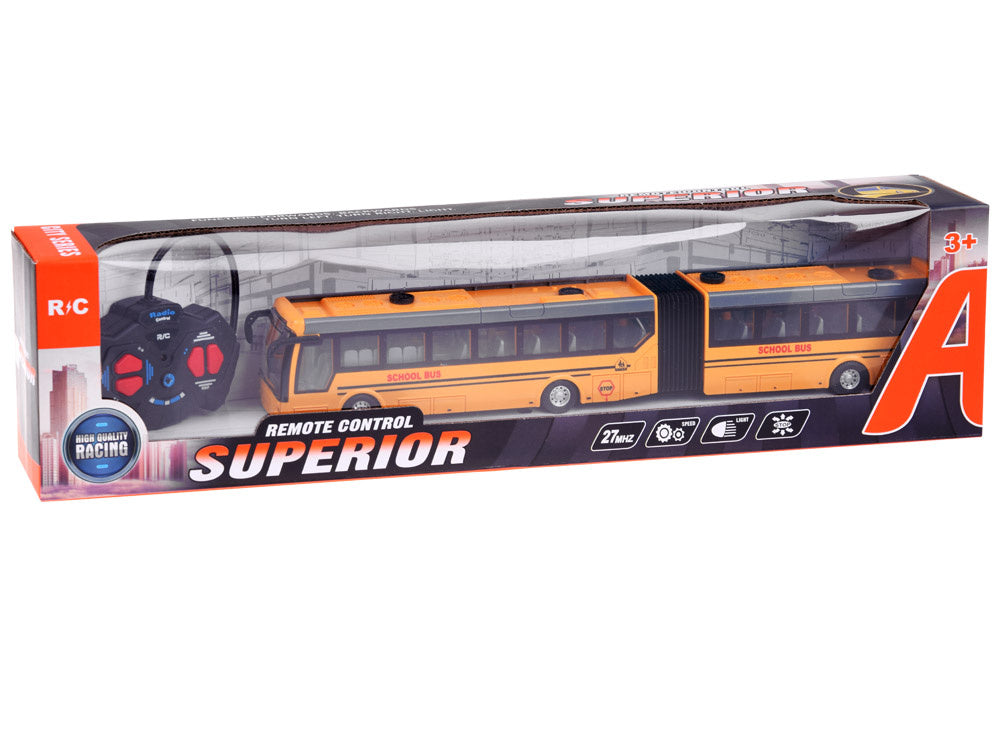 Nuotoliniu būdu valdomas miesto mokyklinis autobusas yra 36,5 cm ilgio šarnyrinis autobusas - tai tikras malonumas tokių didelių transporto priemonių mylėtojams. Dabar kiekvienas vaikas gali tapti profesionaliu savo asmeninio autobuso vairuotoju. Labai įspūdingai pagamintas žaislas suteiks daug džiaugsmo. Rinkinys supakuotas į įspūdingą pakuotę, puikiai tinkančią dovanoms.