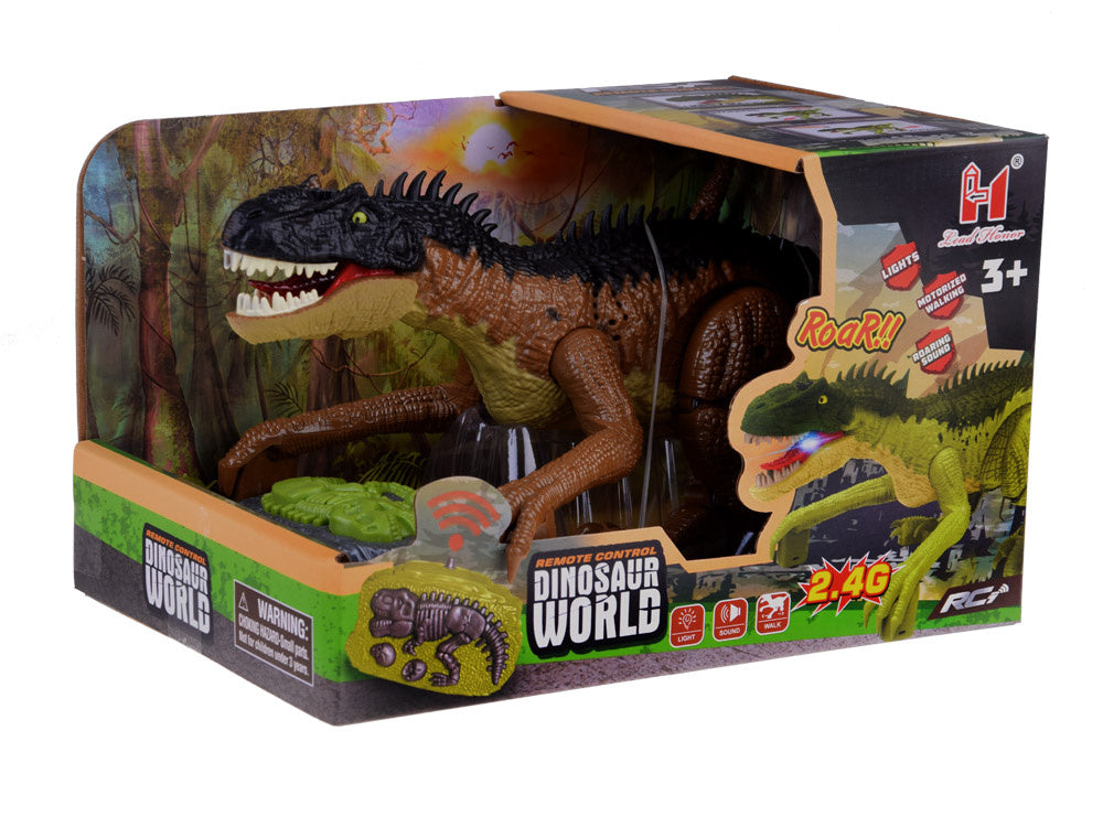 Nuotoliniu būdu valdomas dinozauras su garso ir šviesos efektais, rudas