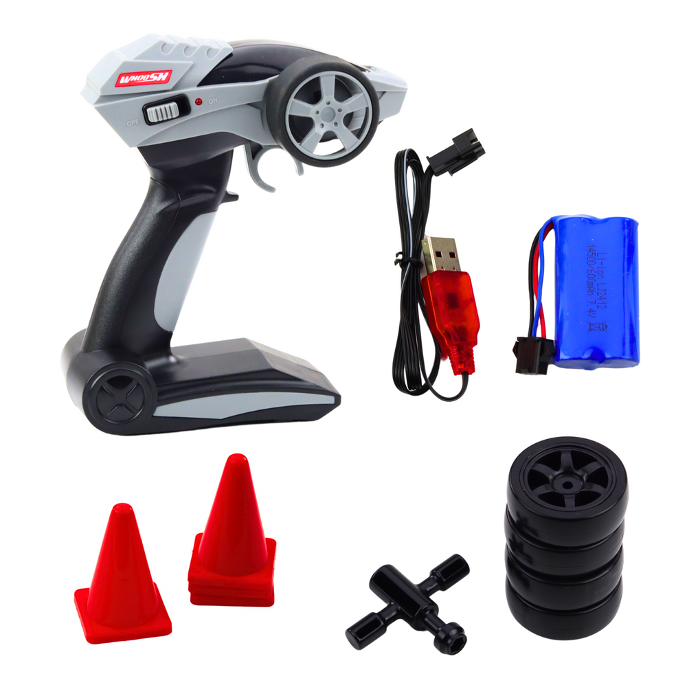 Nuotoliniu būdu valdomas RC lenktyninis automobilis yra pažangus žaislas, kuris pradžiugins kiekvieną greito vairavimo ir lenktynių estetikos mėgėją. 1:16 mastelio modelis pasižymi sportišku dizainu, įkvėptu tikrų trasos transporto priemonių - su plačiu spoileriu ir tikroviškomis žymėmis. Dėl galingos transmisijos automobilis gali išvystyti iki 30 km/h greitį ir puikiai tinka važiuoti tiesiojoje, posūkiuose ir driftuojant.