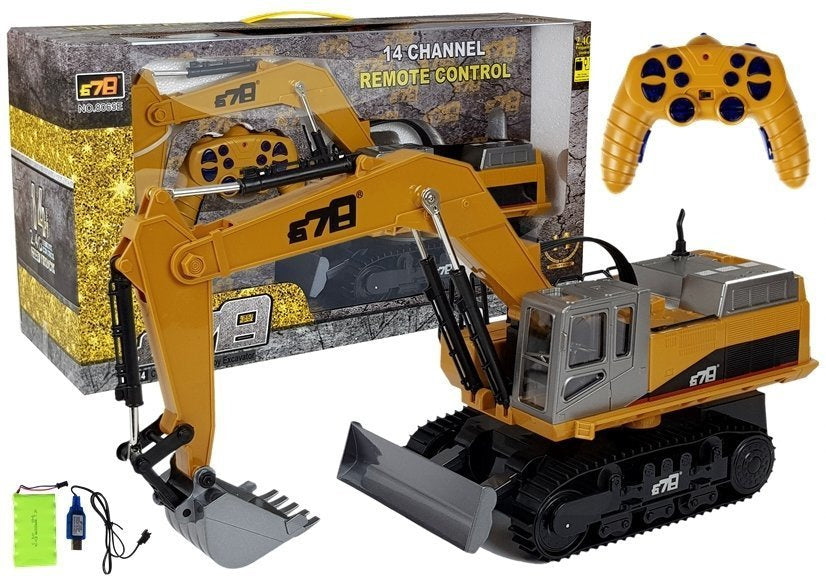 Geltonas, nuotoliniu būdu valdomas ekskavatorius vaikams valdomas kartu su 2,4G nuotolinio valdymo pultu. Jo funkcijos suteiks džiaugsmo bet kuriam operatoriui: ekskavatorius gali važiuoti į priekį / atgal, į dešinę / į kairę, taip pat pakelti rankenėlę.