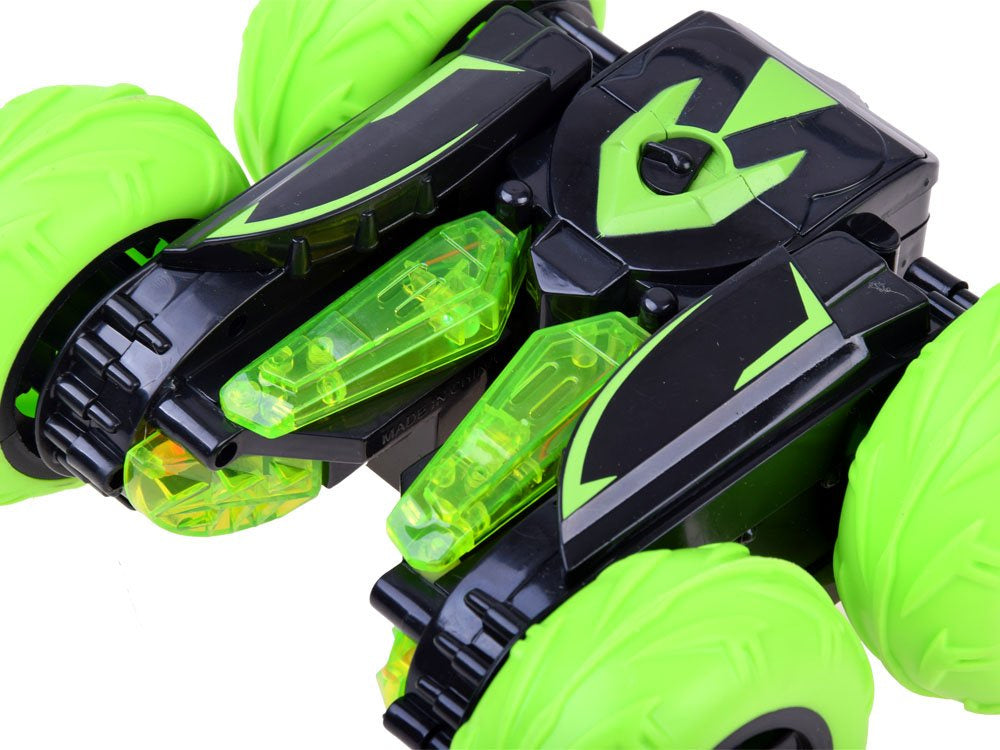 Transporto priemonė gali atlikti įvairią akrobatiką, tad žaisti su ja bus tikrai įdomu. Pagaminta iš aukščiausios kokybės medžiagų, su dideliais guminiais ratais, kurių dėka jokia kliūtis nėra baisi. Ji gali pasisukti 180° ir toliau važiuoti. Važiuojoant šviečia spalvingos mirksinčios lemputės.