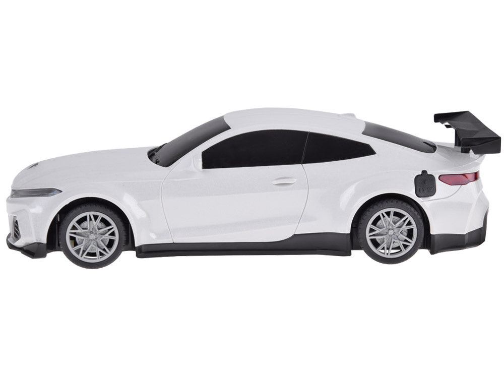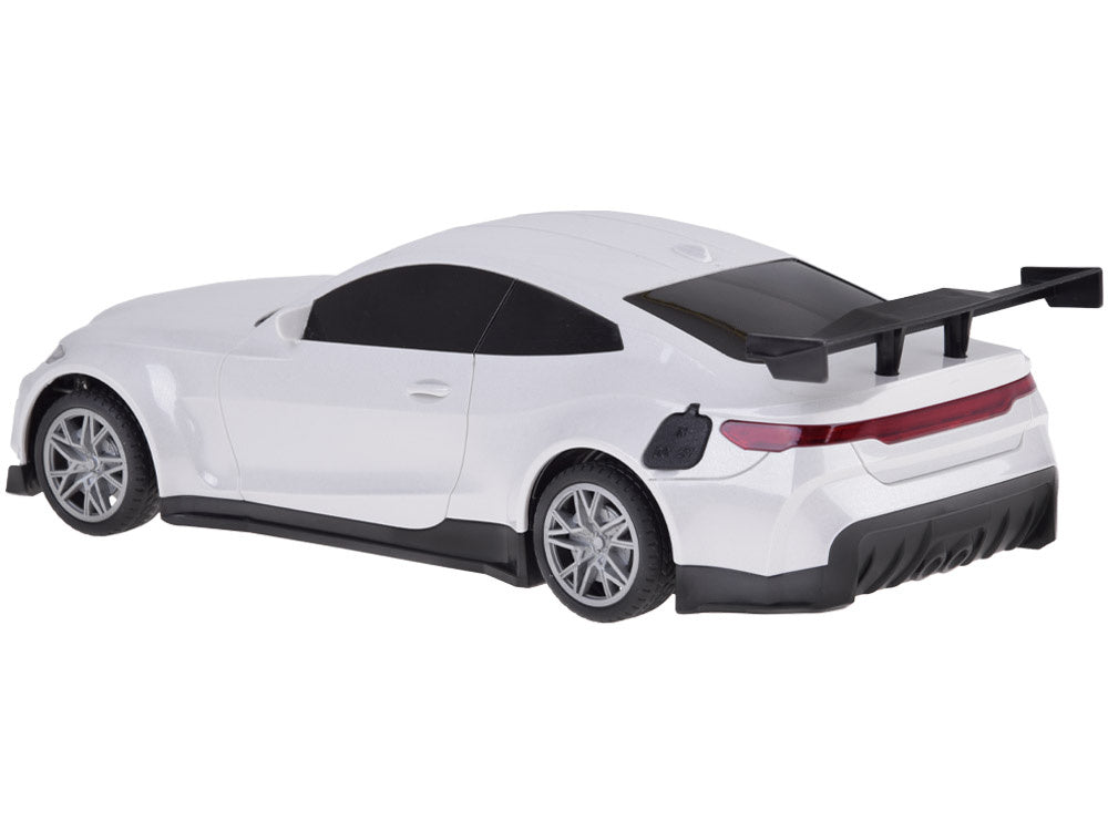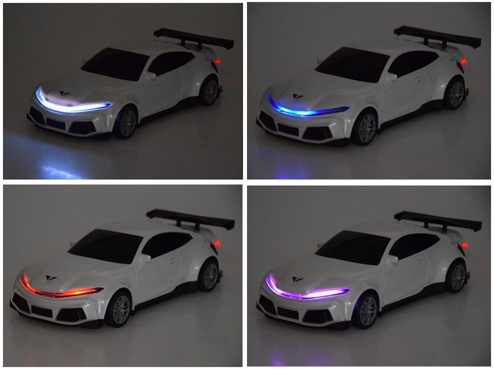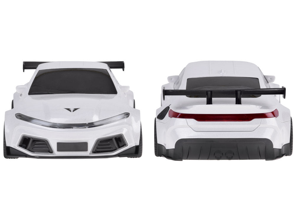 Nuotoliniu būdu valdomas lenktyninis automobilis su šviesos ir garso efektais, baltas