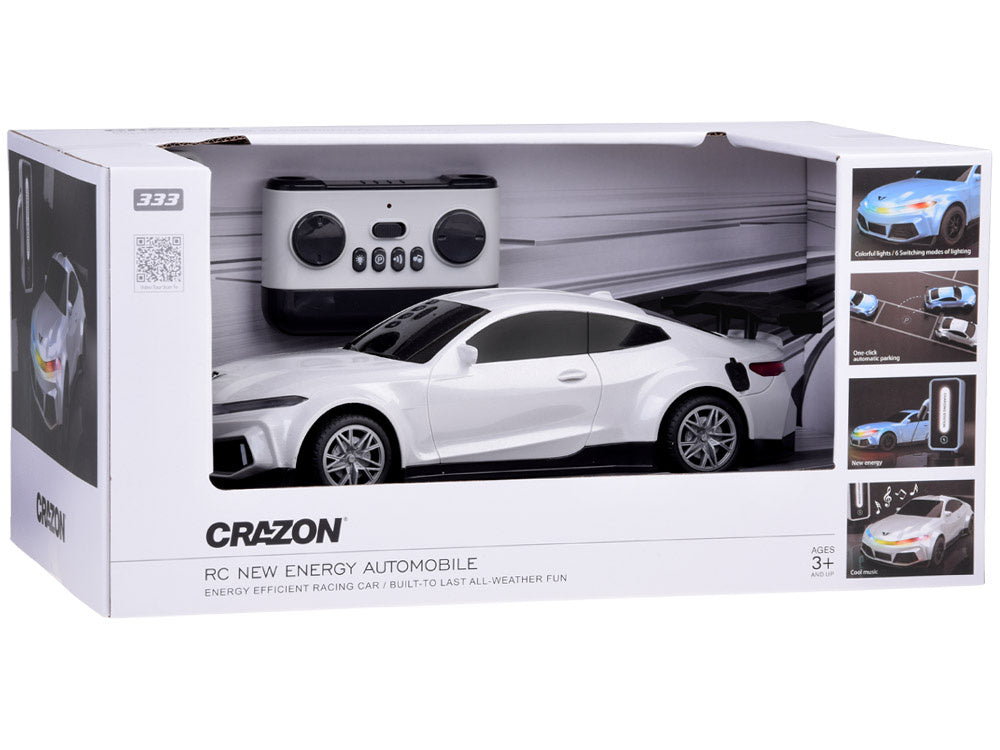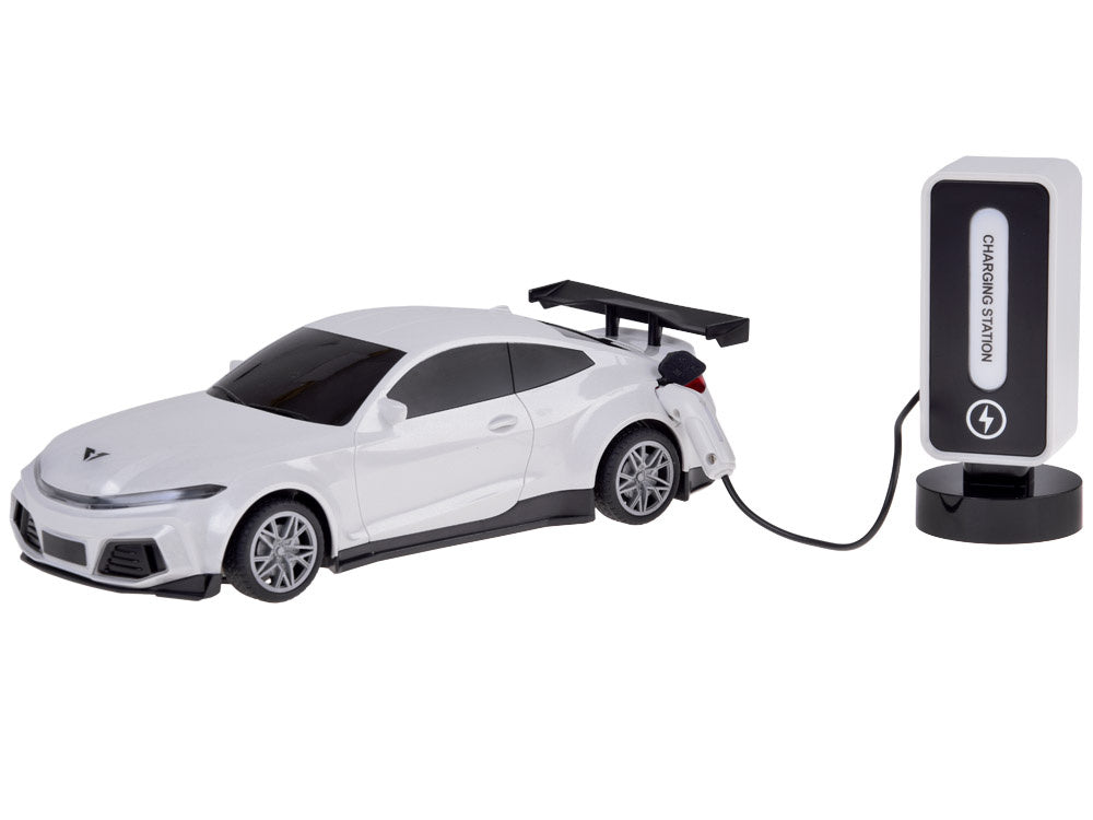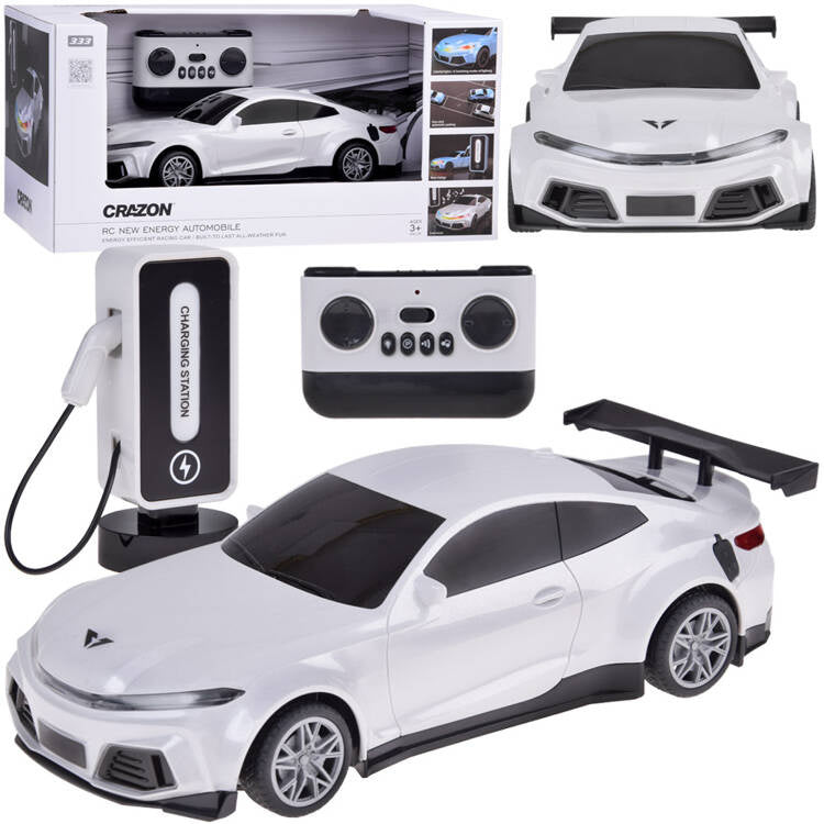 Gražios spalvos nuotoliniu būdu valdomas lenktyninis automobilis suteiks daugybę valandų įdomių pramogų. Automobilis puikiai atkartoja naujausias šiandien automobilių rinkoje esančias technologijas. Kiekvienas mažasis automobilių gerbėjas džiaugsis turėdamas tokį automobilį savo kolekcijoje. Nuotoliniu būdu valdomas automobilis turi specialią įkrovimo stotelę kaip tikri elektromobiliai. Spalvotų žibintų magija ir daugybė fantastiškų funkcijų, kurias turi šis automobilis, pradžiugins ne vieną vaiką. Rinkinys supakuotas į spalvingą ir gražią dėžutę, puikiai tinkančią dovanai.