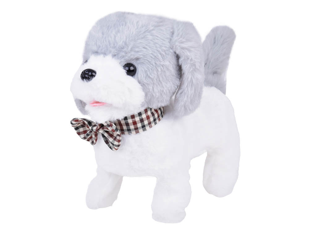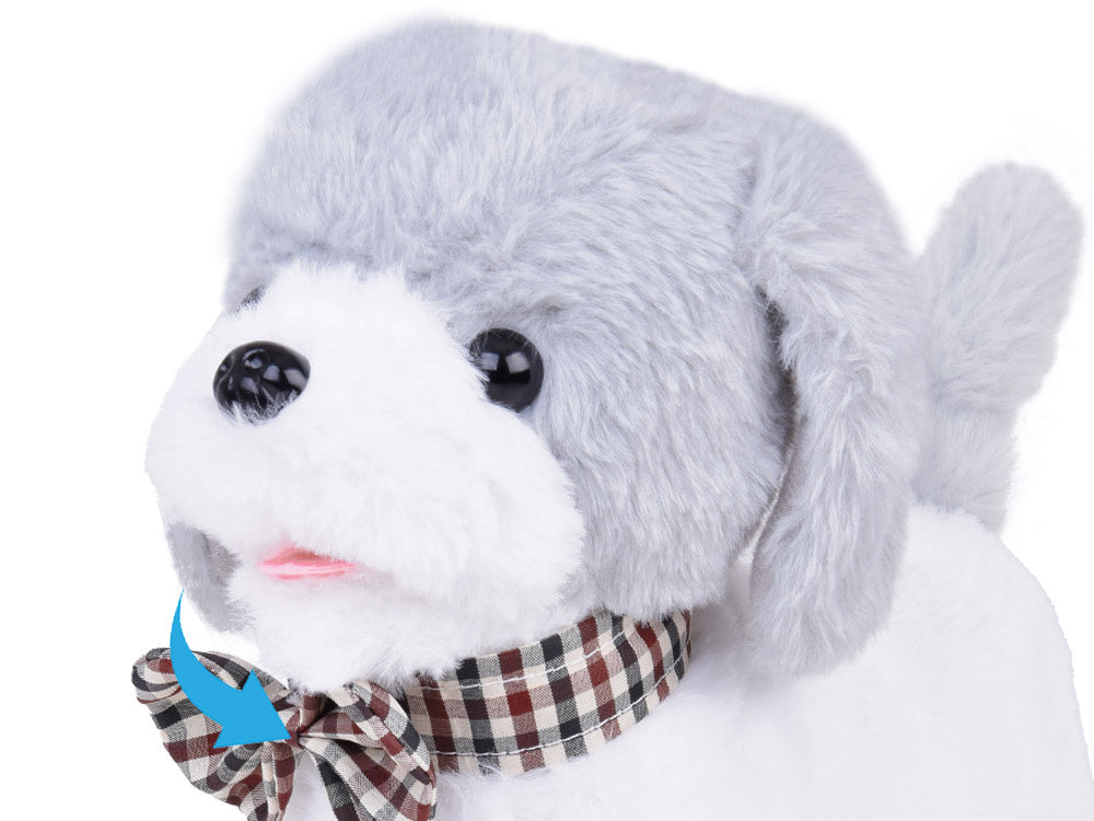 Susipažinkite su elegantišku baltos ir pilkos spalvų šunimi su elegantiška languota peteliške po kaklu. Charli šuo - žavus, interaktyvus, bus puikus kompanionas kiekvienam vaikui, svajojančiam apie nuosavą augintinį. Interaktyvus šuo - puiki dovanos idėja bet kuriam gyvūnų mylėtojui.