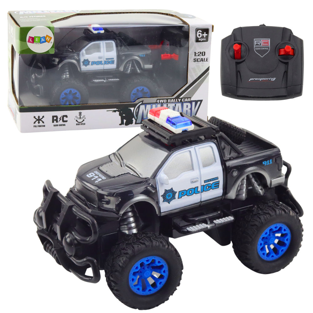 Nuotoliniu būdu valdomas policijos visureigis 1:20, juodas