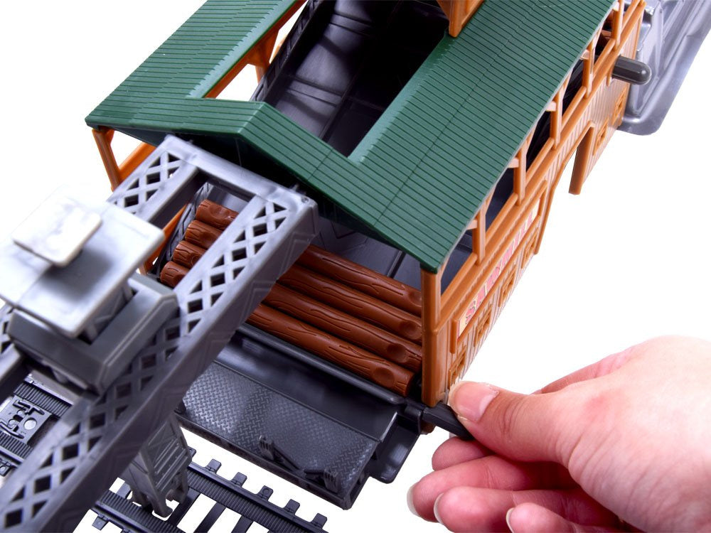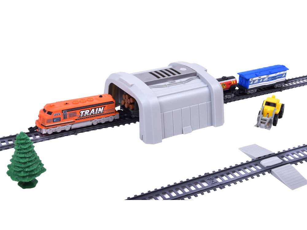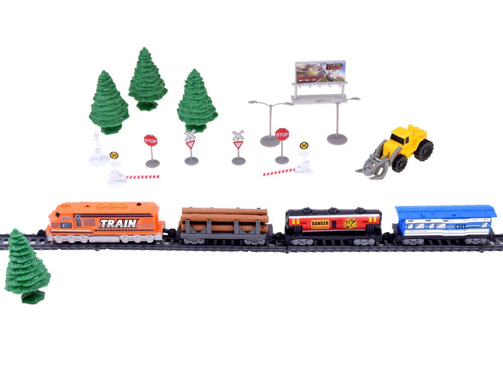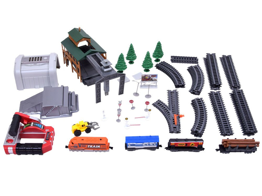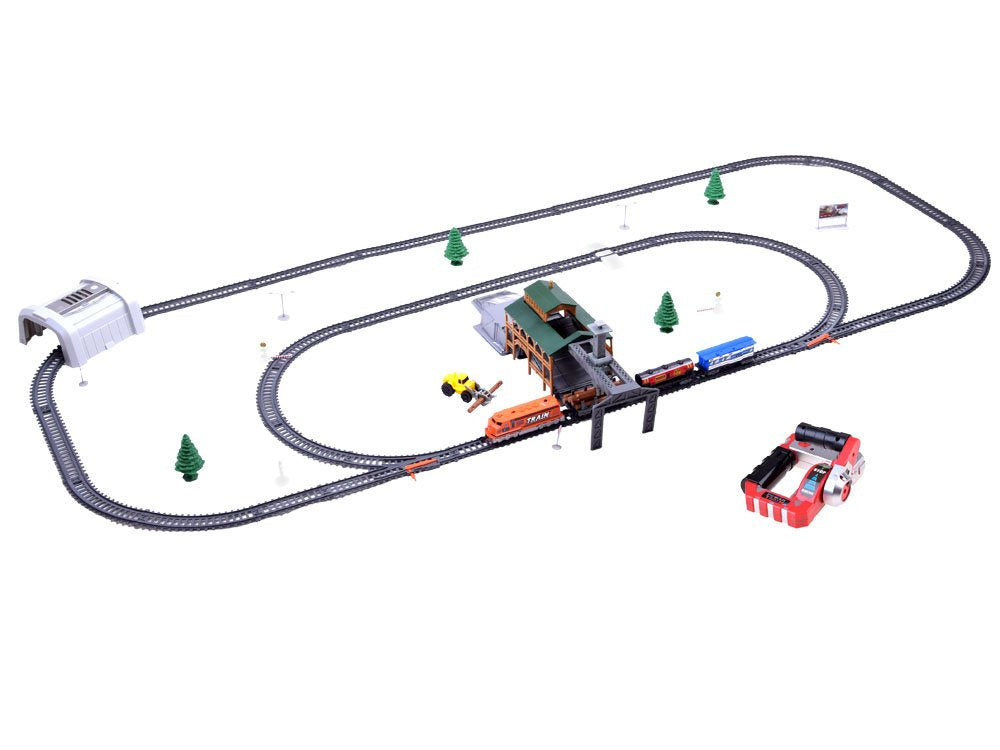 Puiki krovininio traukinio su vagonais ir stotimi imitacija, šiame nuotoliniu būdu valdomame geležinkelyje yra gabenamų prekių iškrovimo sistema ir galimybė keisti bėgius. Tai puikus žaislas vaikams, besidomintiems traukiniais, jis suteiks valandų valandas smagaus laiko ir daug džiaugsmo mažajam mašinistui.