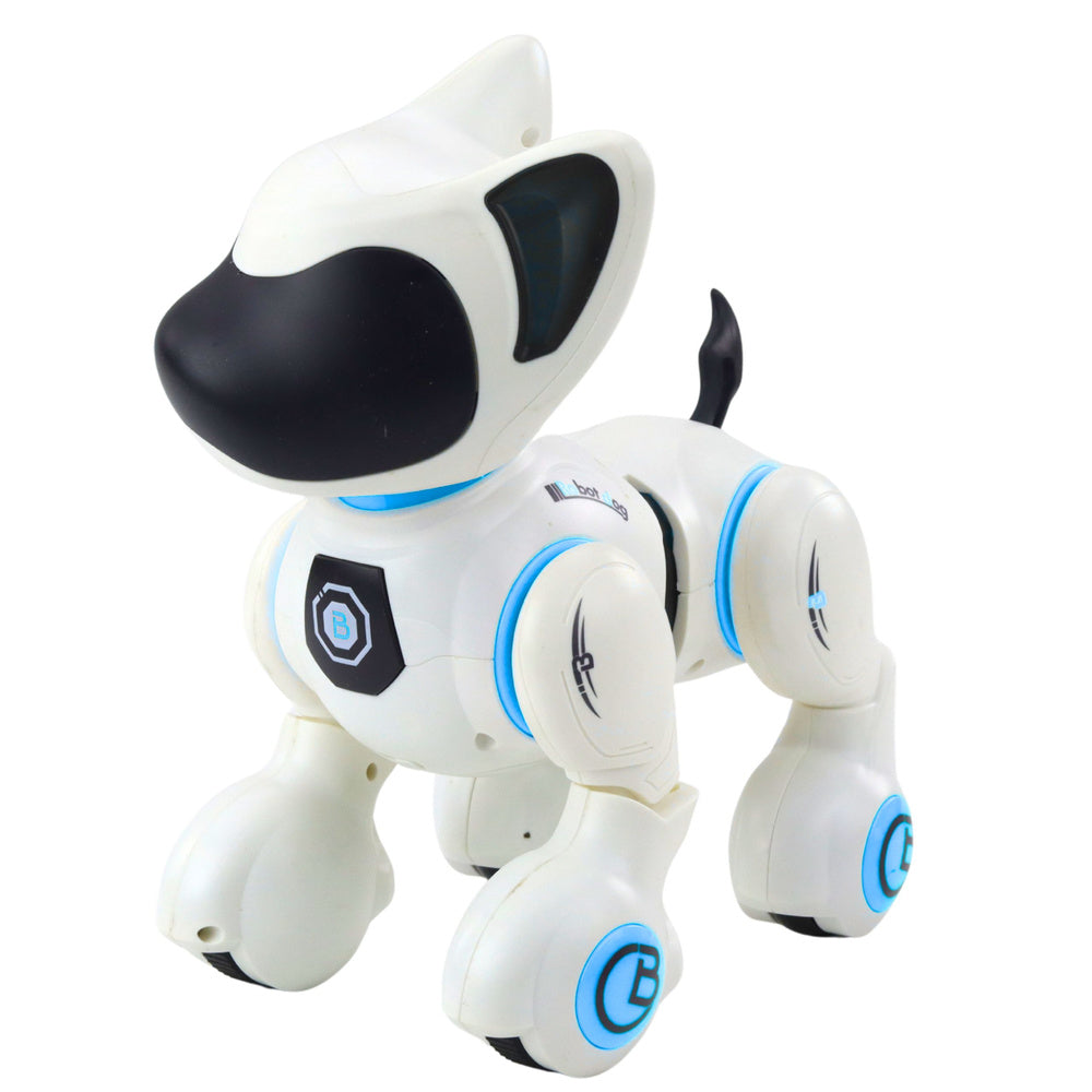 Nuotoliniu būdu valdomas robotas šuo, baltai mėlynas