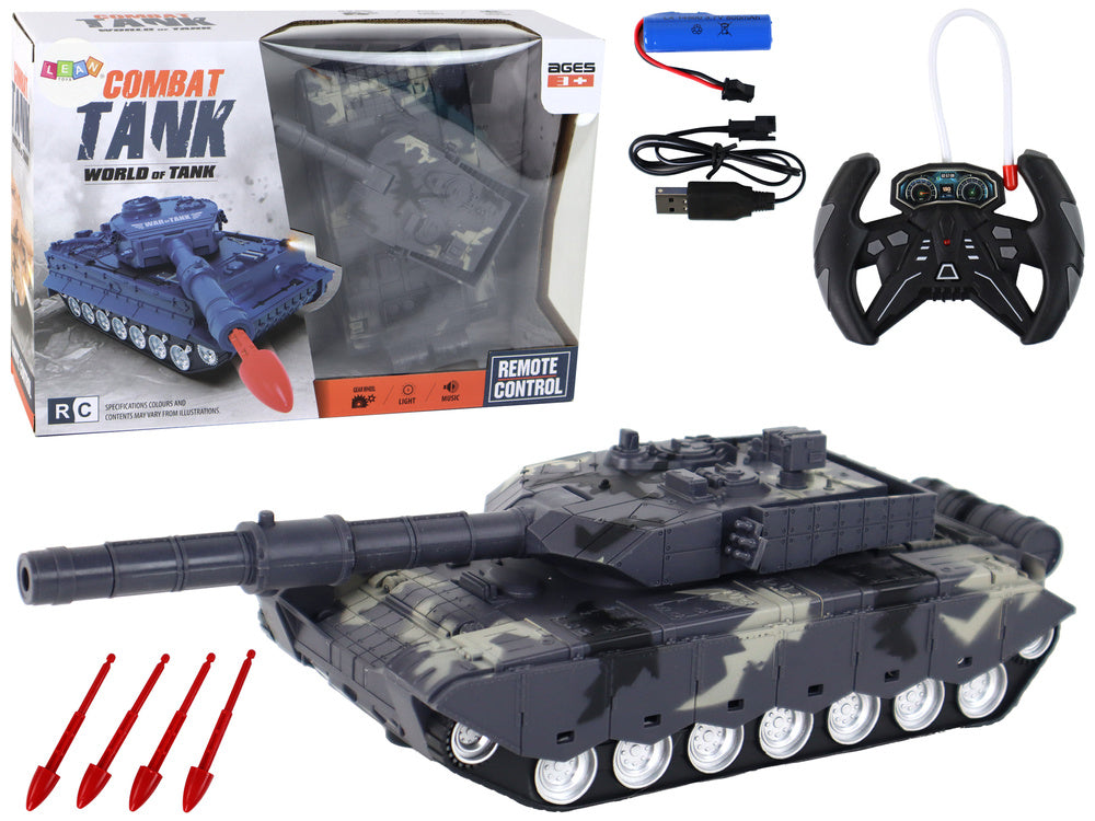 Žaislas yra nuotoliniu būdu valdomas RC tankas, kuris yra tiksli tikro tanko kopija. Galima pamatyti visus būdingus elementus, tokius kaip vikšrai, statinė, bokštelis ir kitos detalės. Tankas turi bokštelį, kuris sukasi 360 laipsnių kampu. Dėl šios funkcijos galite tiksliai nukreipti tanko veikimą įvairiomis kryptimis. Transporto priemonėje yra garso ir šviesos funkcijos, kurios suteikia jai tikroviškumo. Tanko valdymo ir šaudymo garsai bei šviesos sukuria įspūdį, kad iš tikrųjų valdote galingą kovos mašiną. Dėl savo tikroviškos išvaizdos ir daugybės funkcijų jis suteiks daugybę valandų įdomių pramogų.