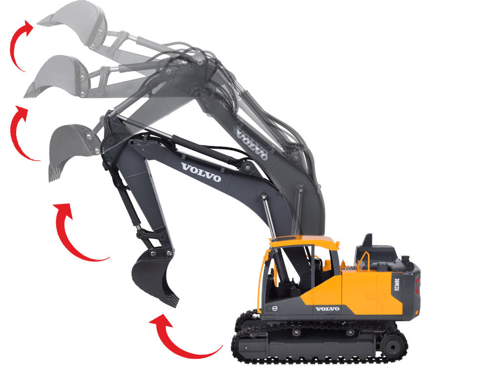 1:16 mastelio licencijuotas „Volvo“ ekskavatorius yra tikroviškas geltonos ir juodos spalvų modelis. Jame yra visi judamieji elementai, pavyzdžiui, svirtis, kaušas, plaktukas, griebtuvas ir besisukanti kabina, todėl galima tiksliai atkurti tikros mašinos darbą. Modelis turi tris keičiamus priedus: standartinį kaušą, plaktuką ir griebtuvą, todėl juo galima imituoti įvairias užduotis. Vaikas taip pat lavina savo vaizduotę imituodamas tikroviškus statybinės mašinos scenarijus.