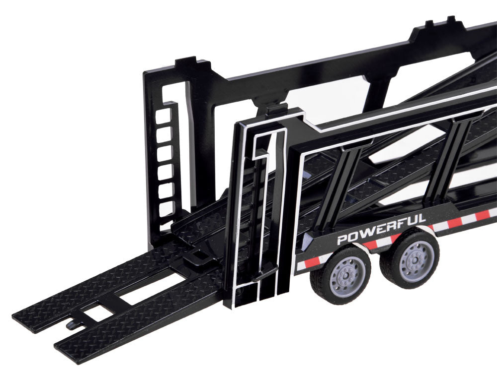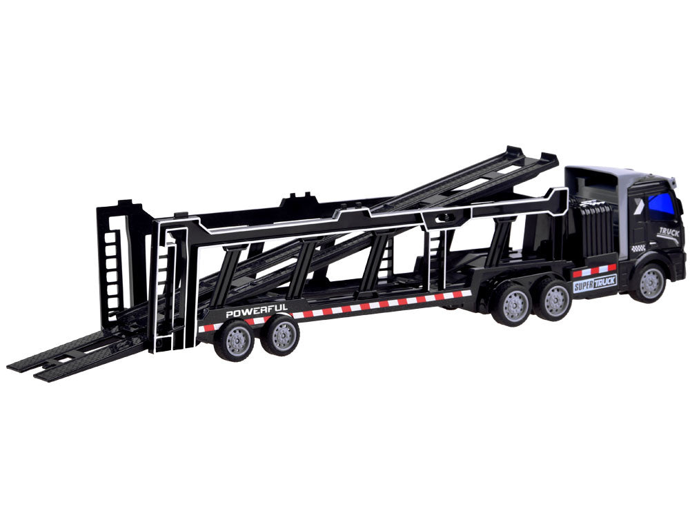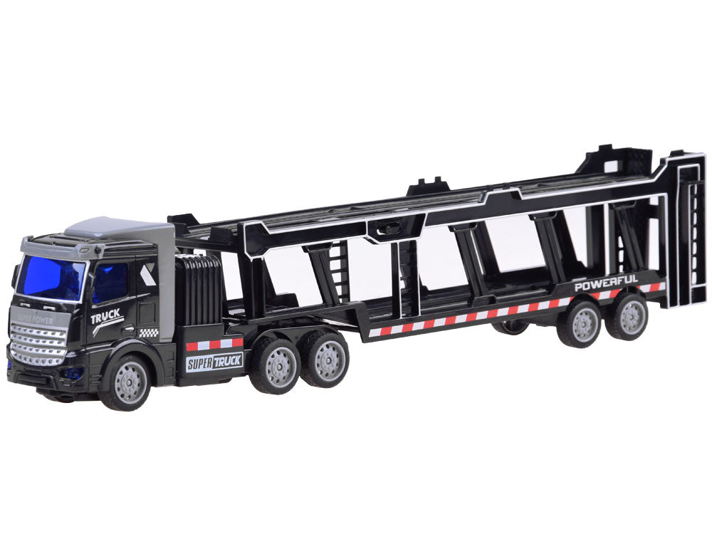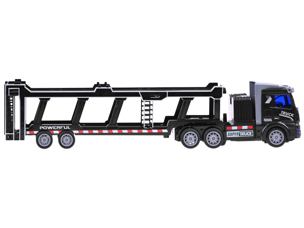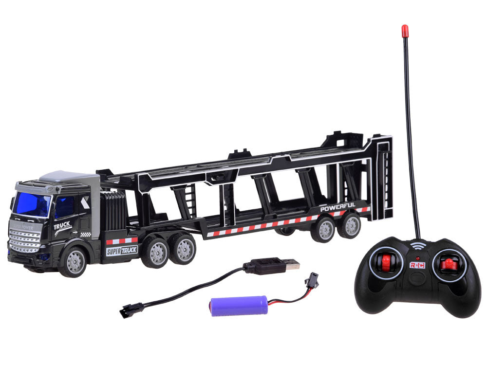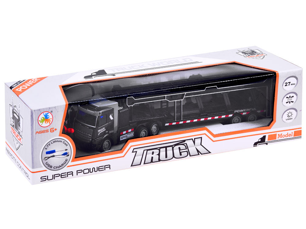 Didelis nuotoliniu būdu valdomas sunkvežimis taps tikra pramoga kiekvienam mažam vairuotojui. Ši transporto priemonės leidžia lavinti tokius įgūdžius, kaip vairavimas, koncentracija, rankų valdymas, mąstymo greitis, vikrumas ir sumanumas. Puspriekabėje galėsite pervežti visas jums reikalingas transporto priemones.