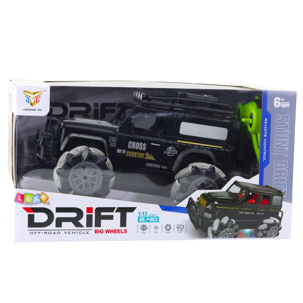 Nuotoliniu būdu valdomas visureigis DRIFT yra unikalus pasiūlymas vaikams ir R/C modelių automobilių entuziastams. Įrengtas šoninio slydimo funkcija, 360° pasukimu ir įspūdingu LED apšvietimu, jis suteikia nepaprastų pojūčių važiuojant. Dėl tvirtos konstrukcijos ir masyvių ratų automobilis puikiai veikia tiek patalpose, tiek lauke. Dėl savo galios, šviesos efektų ir modernaus dizaino DRIFT automobilis yra puiki dovana vaikams ir paaugliams, ieškantiems jaudinančių potyrių.
