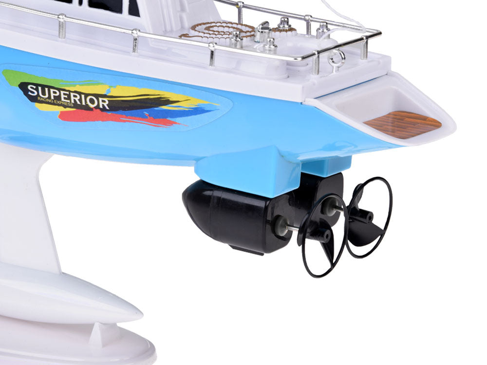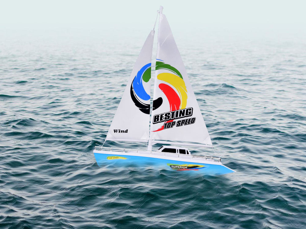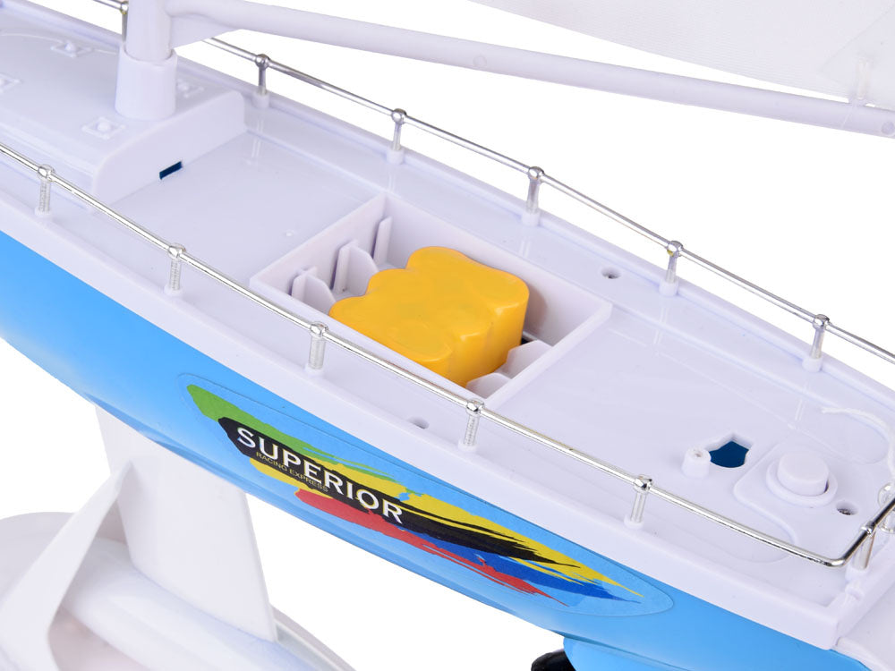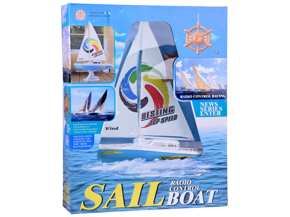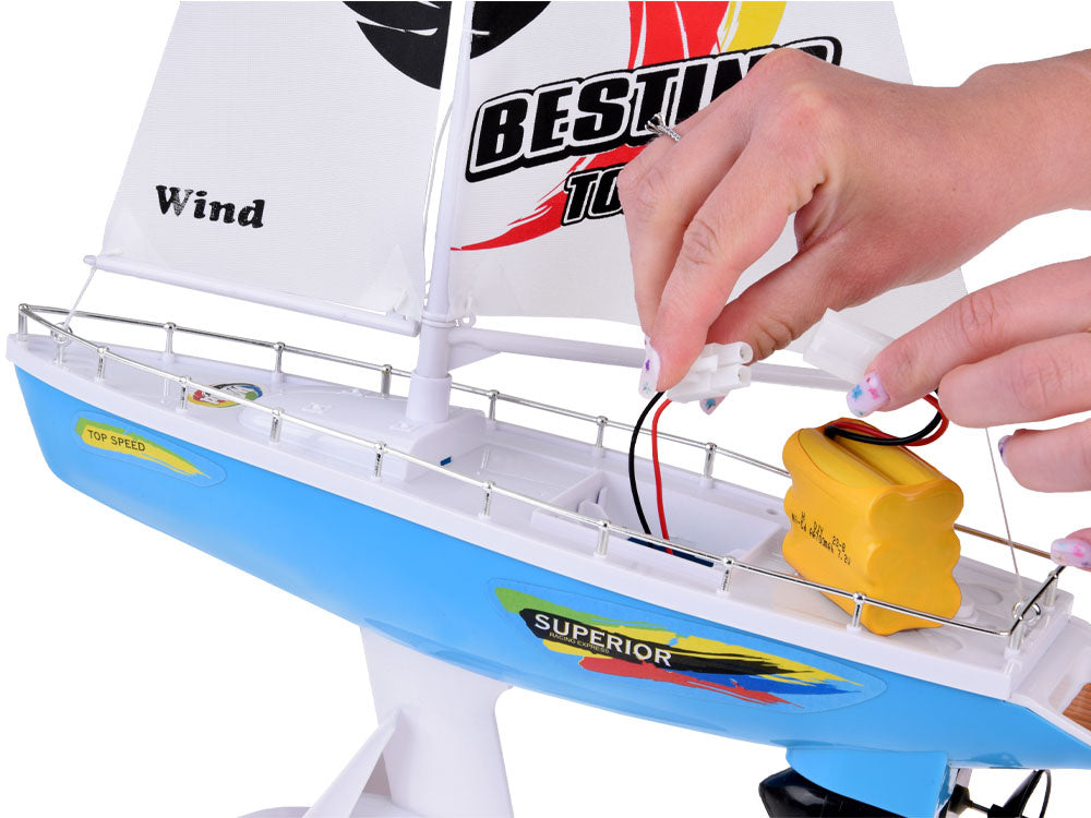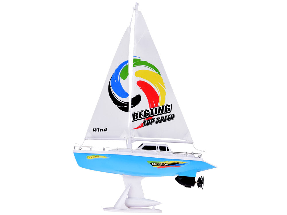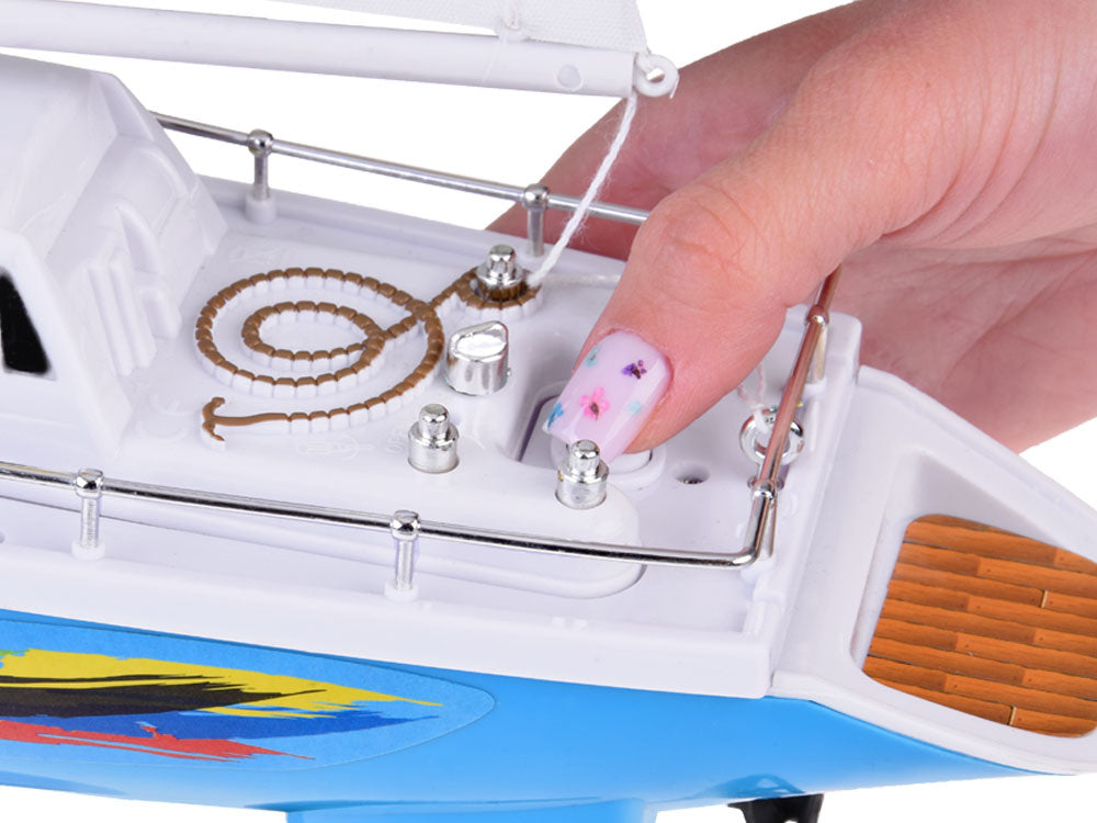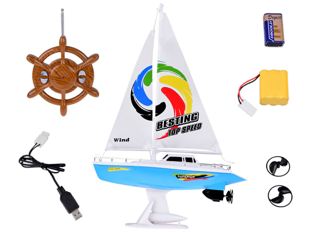 Nuotoliniu būdu valdoma burinė jachta skirta kiekvienam mažajam buriuotojui. Graži mėlynos spalvos jachta su baltomis burėmis valdoma 27 MHz dažnio vairo formos nuotolinio valdymo pulteliu. Žaidimas su šia jachta suteiks daug teigiamų emocijų kiekvienam vaikui.