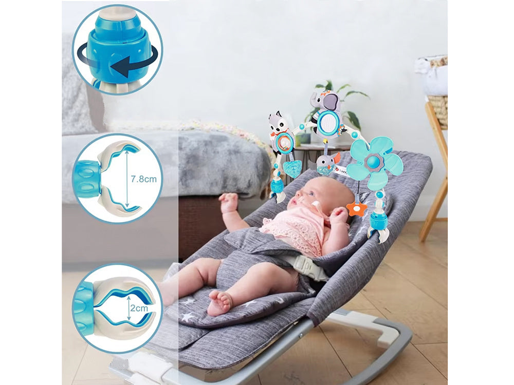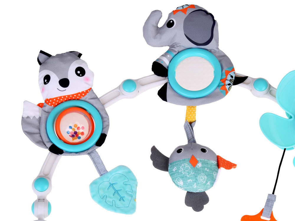 Pakabinami žaislai yra universalus žaislas, kuris suteiks žavesio ir pramogų bet kuriam vežimėliui, automobilio kėdutei ar lovytei. Jis yra itin lankstus, todėl jį lengvai pritvirtinsite praktiškai bet kur. Žaislas prikausto dėmesį ir palaiko vaiko aktyvumą bei smalsumą, kol jis sėdi vežimėlyje ar automobilio kėdutėje.