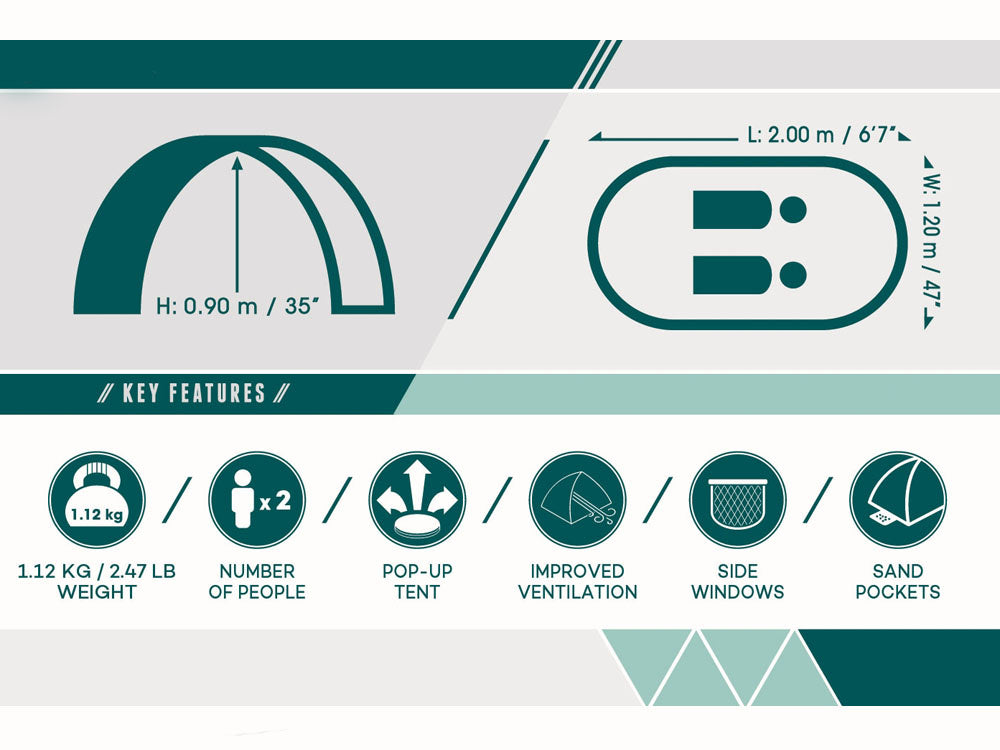 - Palapinę pastatyti užtrunka maždaug 3 minutes