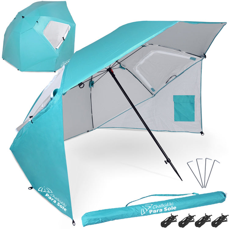Paplūdimio skėtis UPF 50+, yra nepakeičiamas paplūdimio ir sodo palydovas karštomis dienomis. Jis suteikia prieglobstį ir pavėsį, apsaugo nuo saulės ir nepalankių oro sąlygų. Dėl kupolo su UPF 50+ apsauga skėtis užtikrina maksimalią apsaugą nuo saulės spindulių ir lietaus. Supakuotas į patogų dėklą su rankena, todėl jį lengva nešiotis ir laikyti. Rinkinį siunčiame kartoninėje dėžutėje.