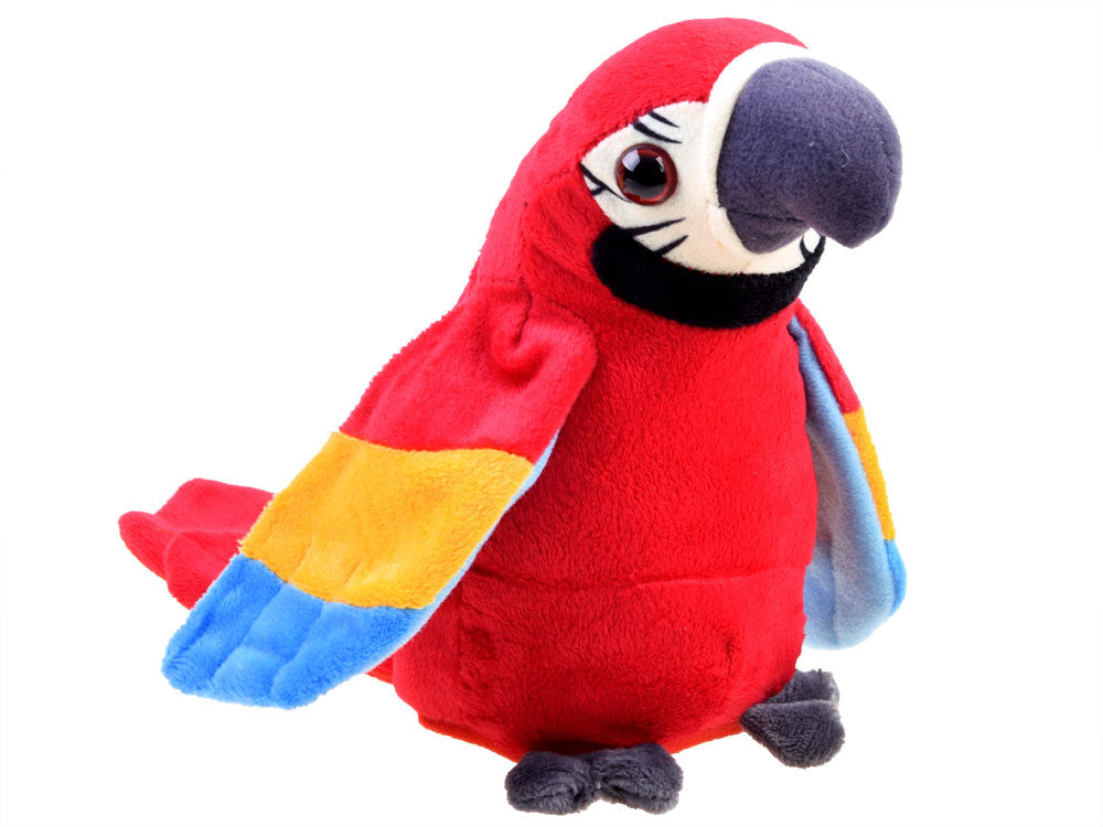 Kolorowa, pluszowa Papuga pleciuga powtórzy wszystko co jej powiesz! Uroczy, kolorowy ptak ma funkcje odtwarzania tego, co się do niej mówi w komiczny sposób.