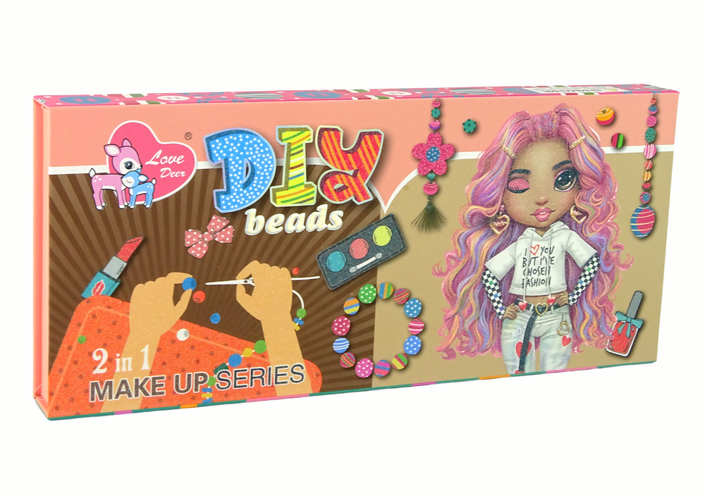Makiažo ir papuošalų gamybos rinkinys 2in1 yra puikus žaislas jauniesiems menininkams. Šis kūrybinis rinkinys leidžia vaikams išreikšti savo vaizduotę tiek kuriant makiažą, tiek kuriant savo papuošalus. Be to, rinkinyje yra indelis su 100 įvairių karoliukų 6 skirtingų formų (saldainių, širdelių, žvaigždučių, jūrų žvaigždžių, jūrų arkliukų, kriauklių), iš kurių galima kurti unikalius papuošalus. Viskas sudėta į gražią pakuotę su veidrodėliu, kuris skatina kūrybinį žaidimą. Tai puikus žaislas, kuris ne tik linksmina, bet ir lavina vaikų vaizduotę bei kūrybiškumą. Suteikite vaikui galimybę kurti ir eksperimentuoti su spalvomis, stiliumi ir papuošalais jau šiandien!
