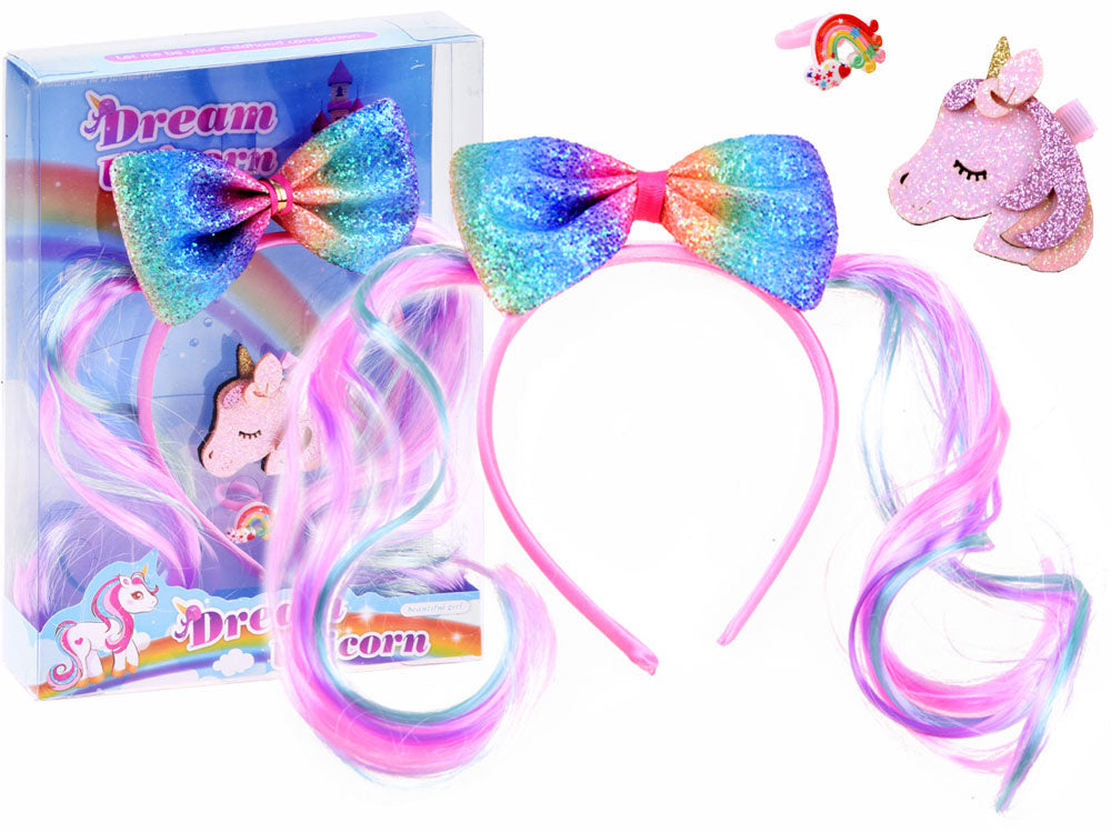 Rinkinys puikiai tiks kasdieniam stiliui darželyje, gimtadienio šventei, išleistuvėms, pasivaikščiojimui. Dirbtiniai plaukai su lankeliu, kuris aptrauktas atlasiniu rausvu audiniu spalvotais poniais, segtukas su vienaragiu ir plastikiniu žiedu su vaivorykšte sukurs puiku įvaizdį. Šukuosenų papuošalų rinkinys tikrai patiks daugeliui vaikų.