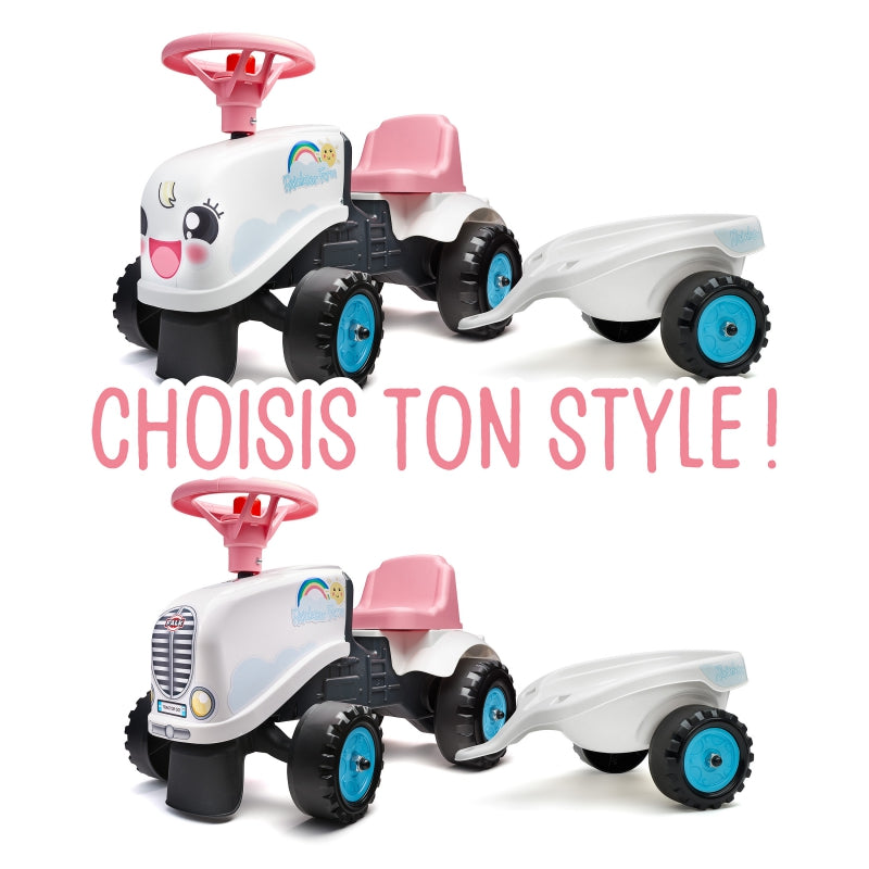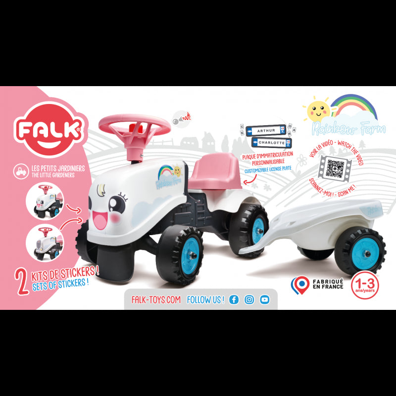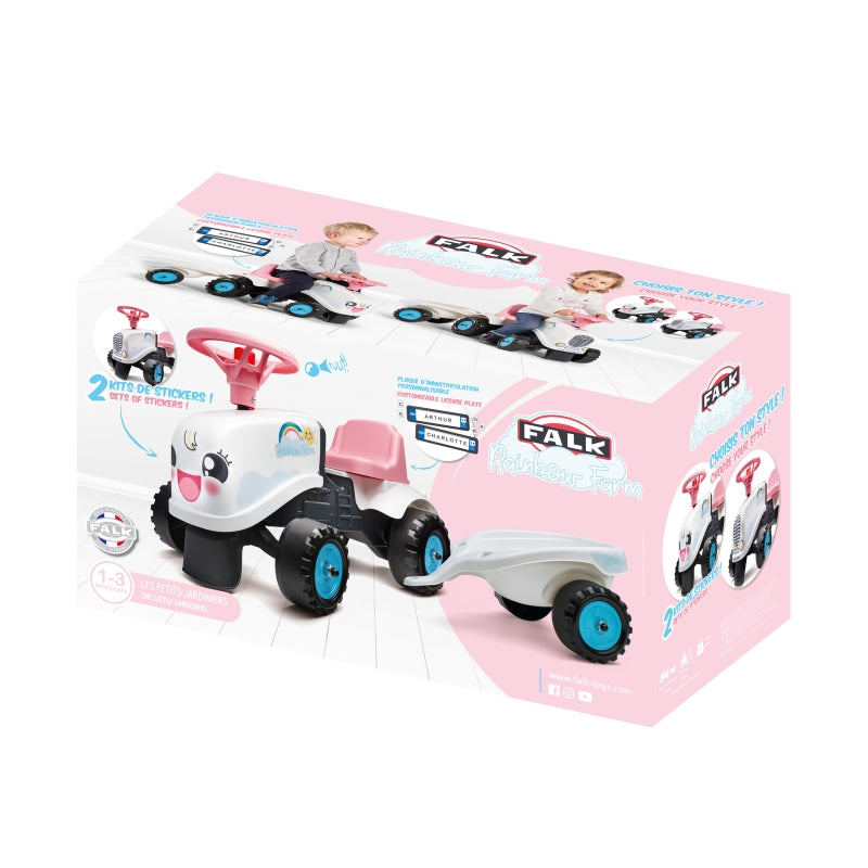 Paspiriamas traktorius FALK RAINBOWN su priekaba, baltas