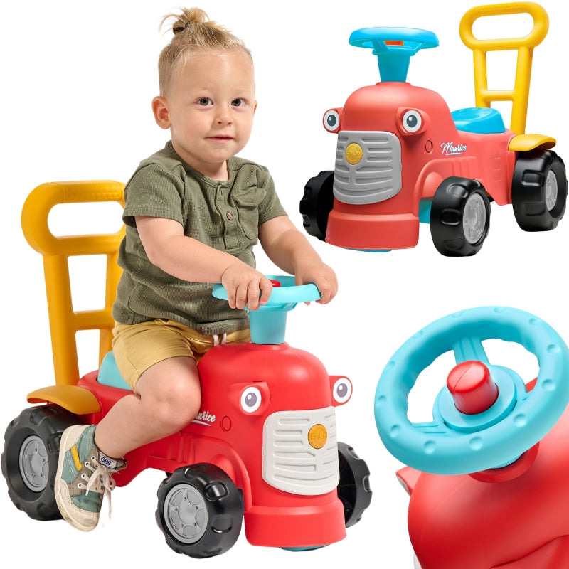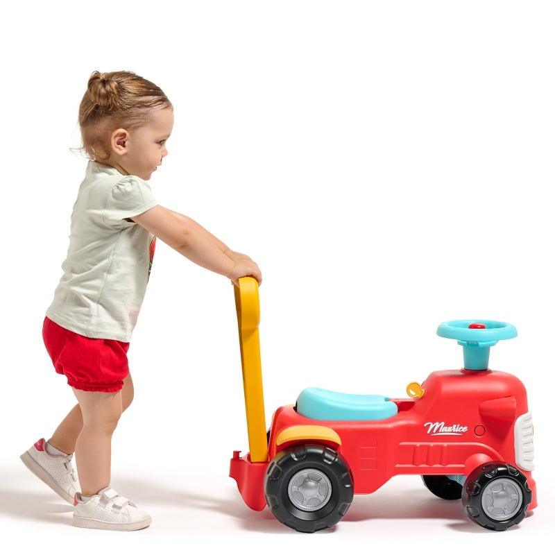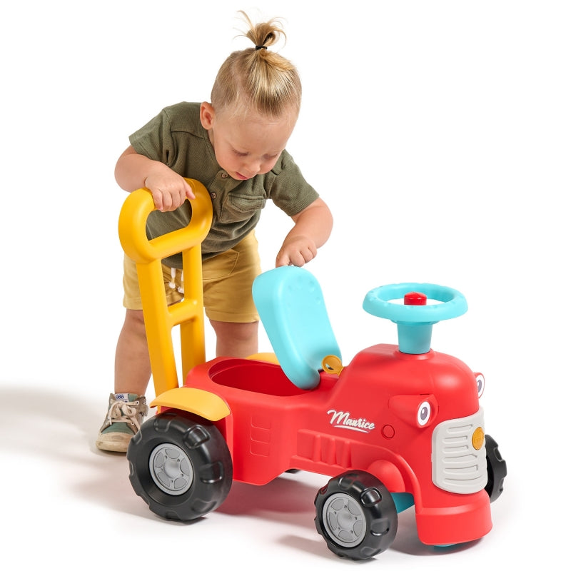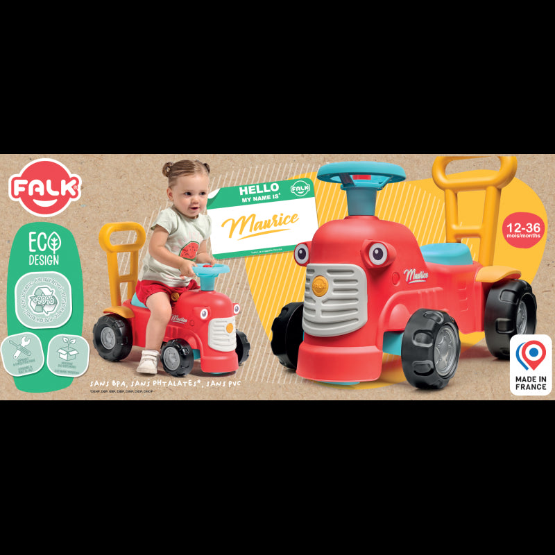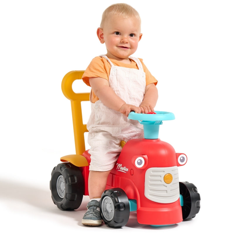 Maurice yra žavus prancūzų prekės ženklo "Falk" traktoriukas, kuris lydės pirmuosius jūsų vaiko žingsnius. Ryškios spalvos ir apvalios formos pradžiugins kiekvieną vaiką. Važinėdamas traktoriumi, žaisdamas su vairu ir sukdamas ratus, jūsų vaikas lavins koordinaciją ir pusiausvyrą. Po sėdyne yra nedidelis skyrius lobiams laikyti.