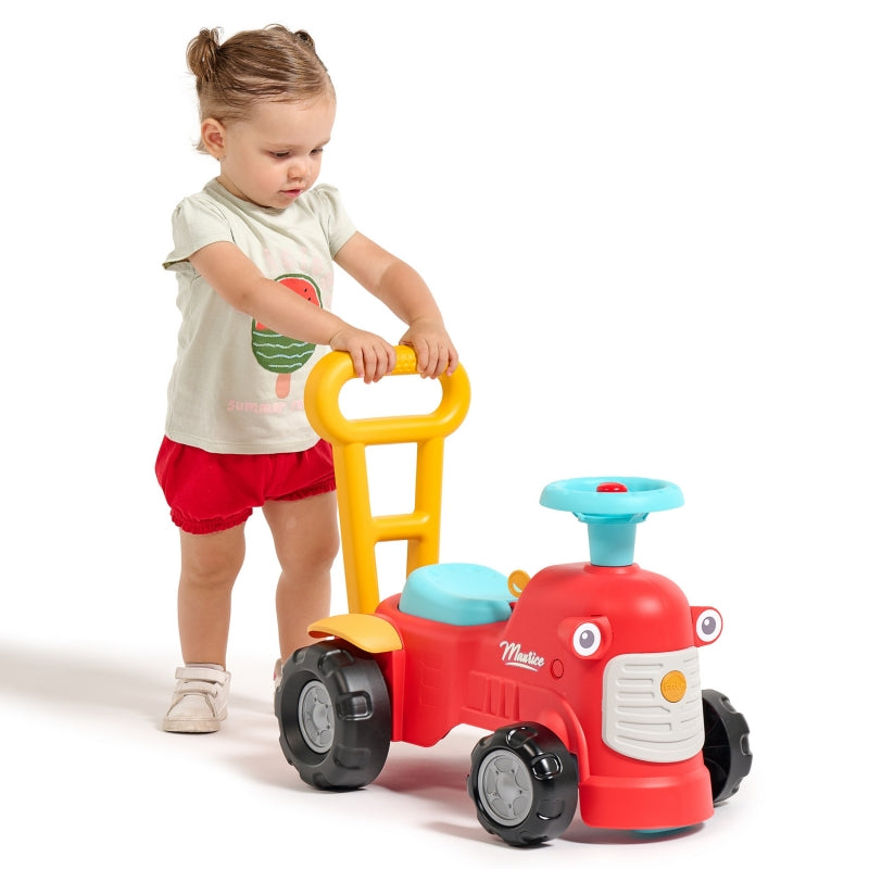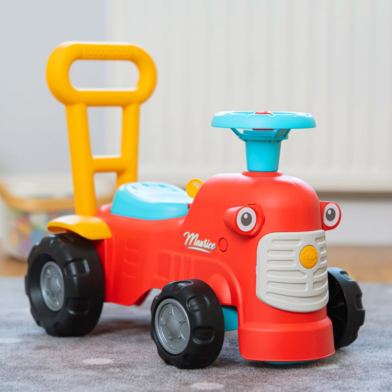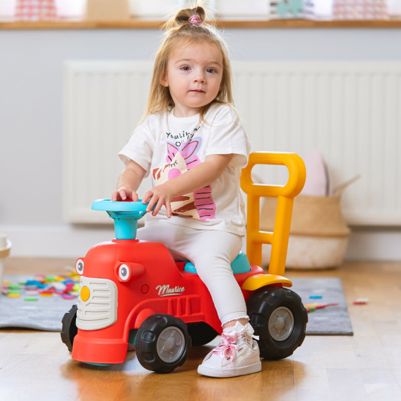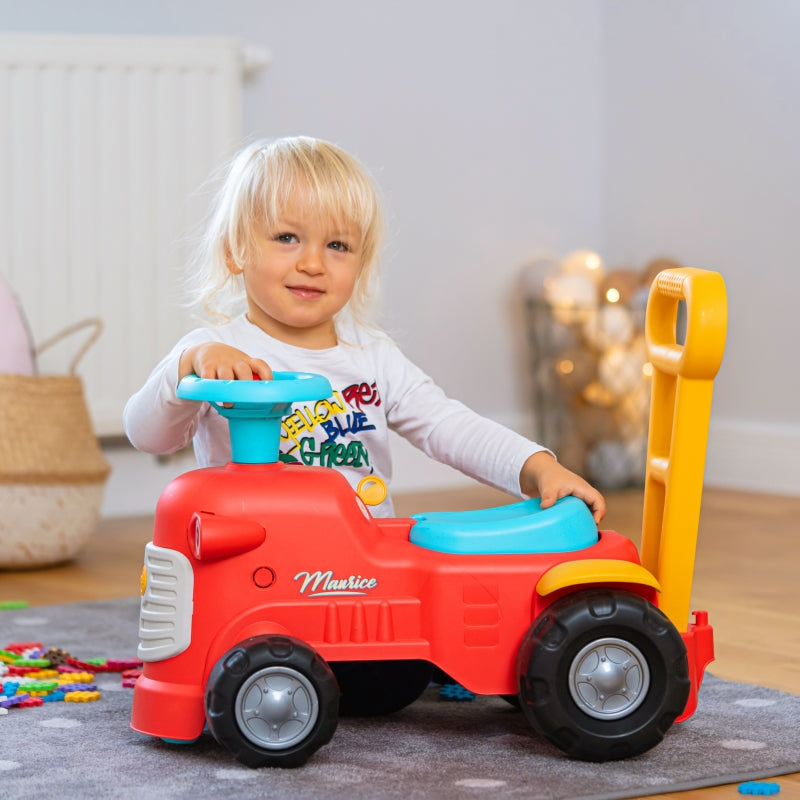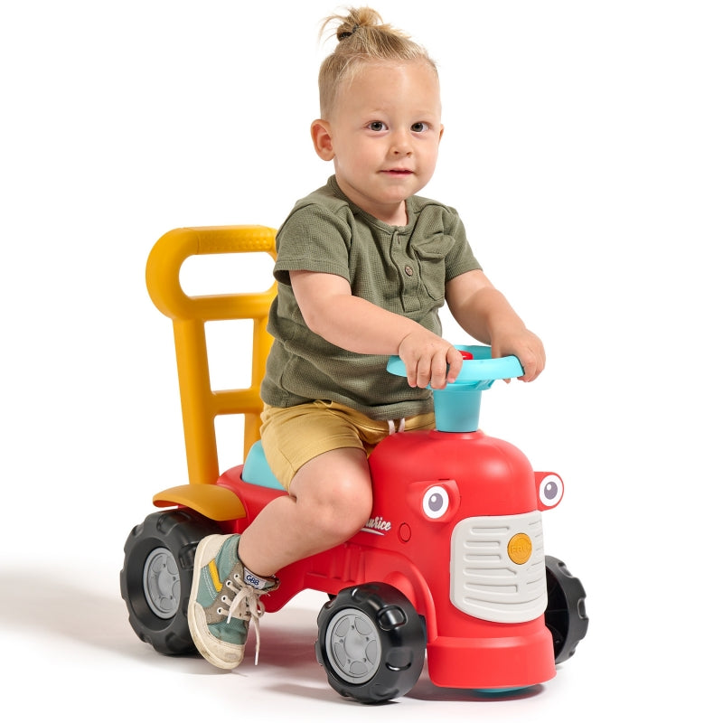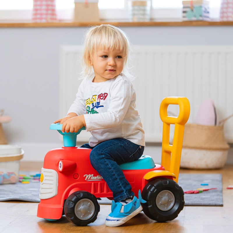 Maurice yra žavus prancūzų prekės ženklo "Falk" traktoriukas, kuris lydės pirmuosius jūsų vaiko žingsnius. Ryškios spalvos ir apvalios formos pradžiugins kiekvieną vaiką. Važinėdamas traktoriumi, žaisdamas su vairu ir sukdamas ratus, jūsų vaikas lavins koordinaciją ir pusiausvyrą. Po sėdyne yra nedidelis skyrius lobiams laikyti.