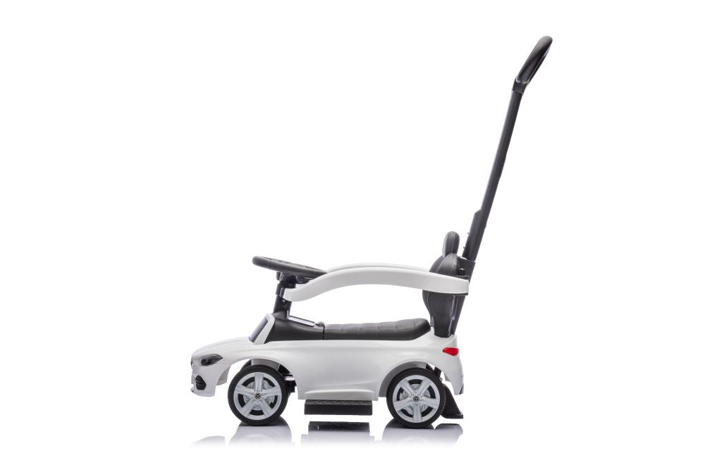 Paspiriamas vaikiškas automobilis Mercedes 3in1 su rankena, baltas