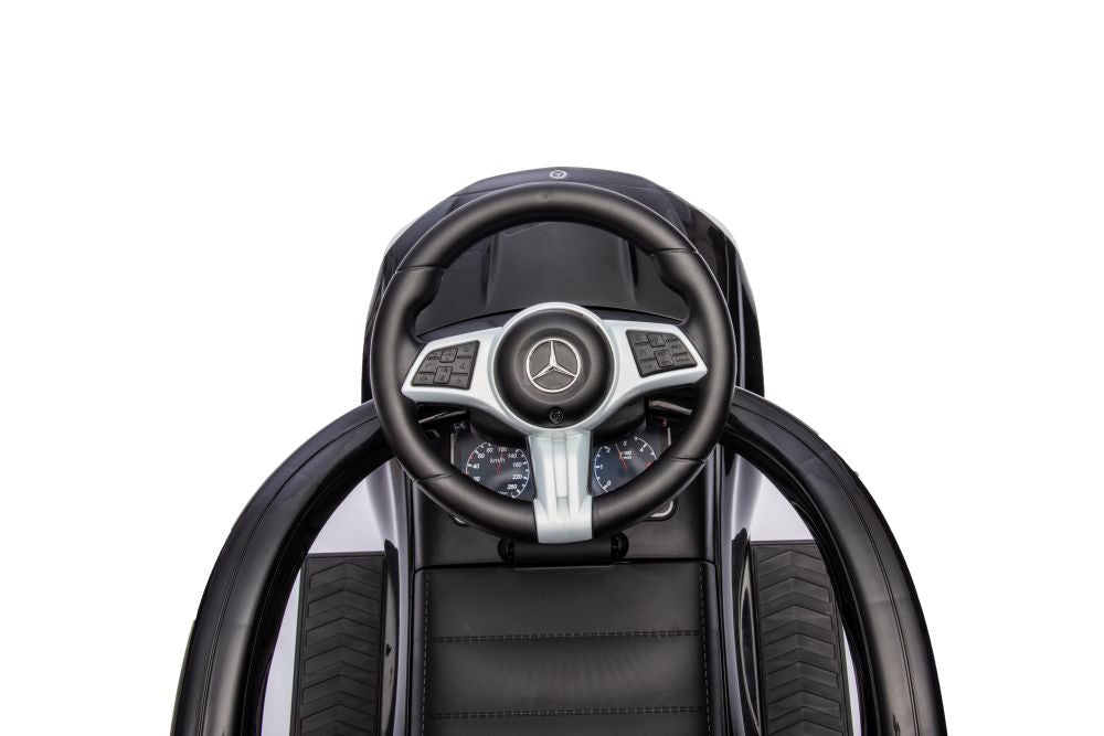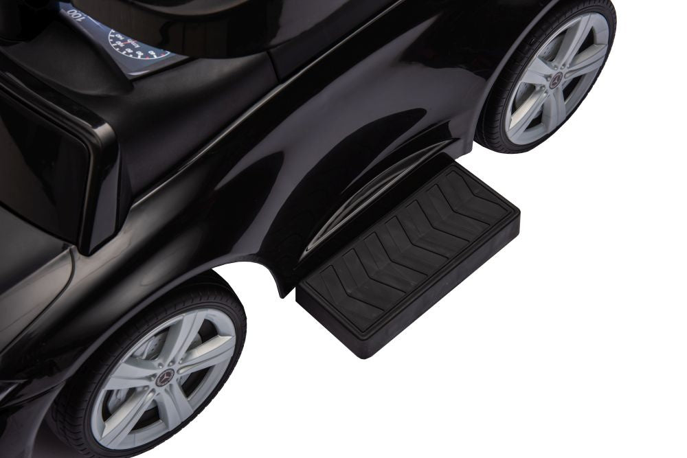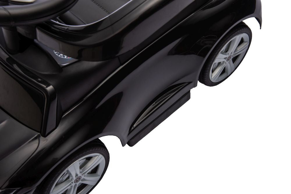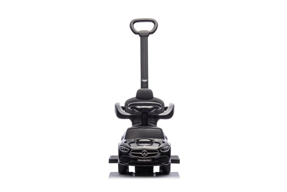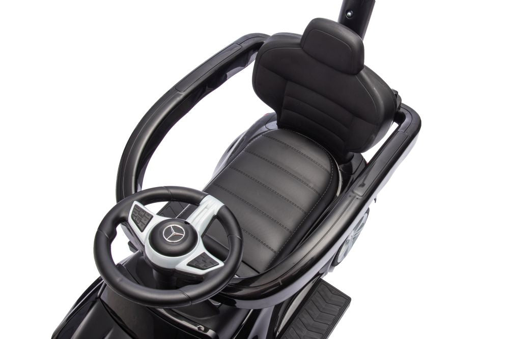 Paspiriamas vaikiškas automobilis Mercedes 3in1 su rankena, juodas