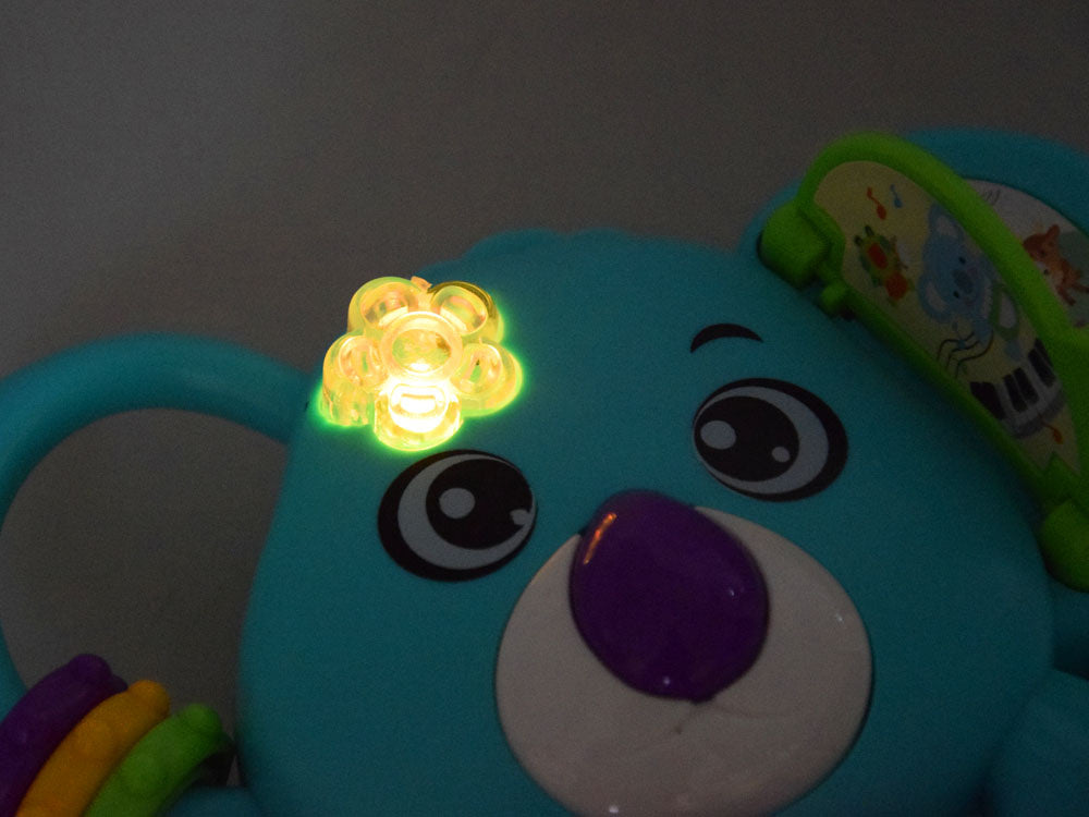 Spalvotas interaktyvus pianinas su koala meškiuko motyvu tikrai pradžiugins kiekvieną mažylį. Vaikai apie juos supantį pasaulį mokosi visais pojūčiais, todėl pianinas vienu metu stimuliuoja kelias sritis. Kiekvieną kartą paspaudus klavišus pianiną lydi mirksinti, spalvą keičianti lemputė, esanti gėlėje.