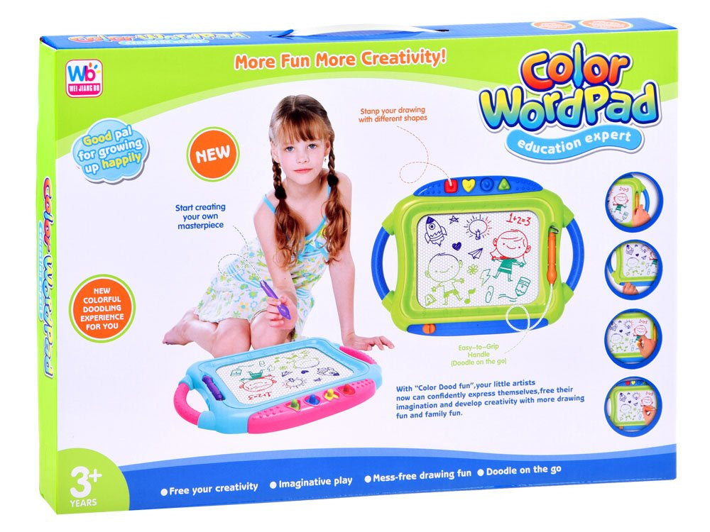 Piešimo lenta skirta vaikams, kurie mėgsta piešti, tapyti, lipdyti, žaisti meno kūrinius, tiesiog žaisti. Keturių spalvų plokštuma leis sukurti įvairiaspalvius piešinius. Jei piešinys nusibosta arba nepatinka, galite jį tiesiog ištrinti stumdomu rankenos formos žymekliu.