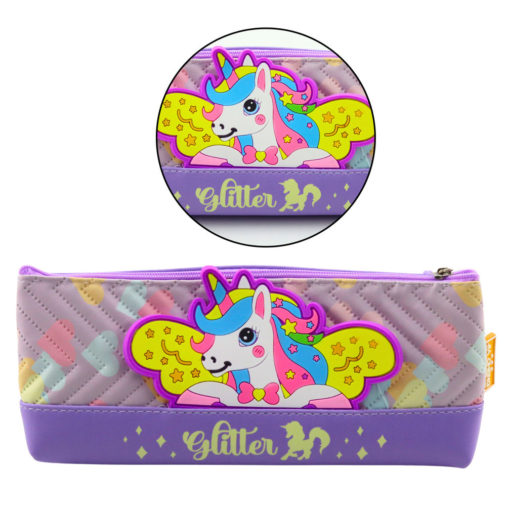 Unikalus dizainas vaikams tikrai patrauks visų dėmesį. Žavi vienaragio formos pieštukinė, pagaminta iš medžiagos, panašios į odą, puikiai tinka mokyklinėms reikmėms laikyti.