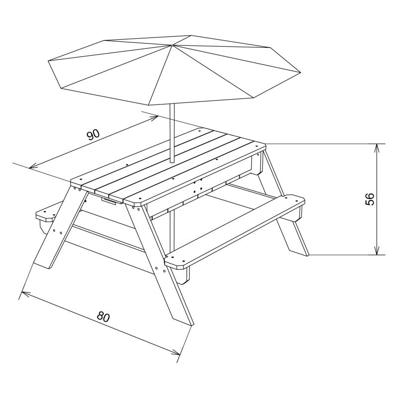 Pikniko stalas su smėlio ar vandens talpyklomis ir skėčiu, AXI Nick