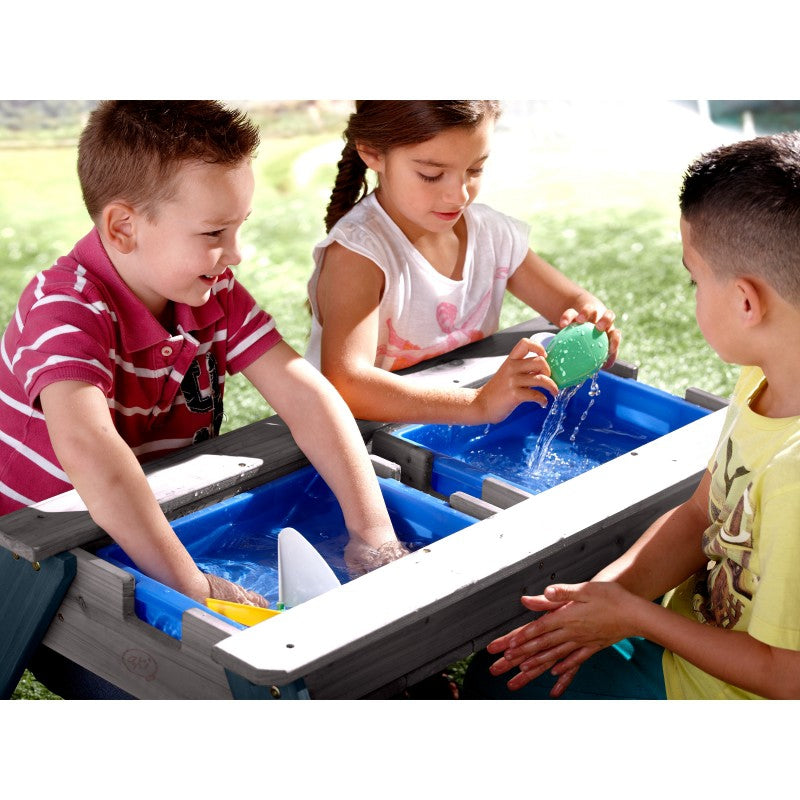 Jūsų vaikai galės mėgautis „Axi Nick“ iškylų stalu vaikams. Vaikai turi kur patogiai pasėdėti, pažaisti ir piešti. Mažieji turės patogų kampelį tik sau. Ir jei jiems nusibosta ramiai sėdėti, nuėmus stalviršį, komplektas virsta smėlio dėže arba vandens stalu. Mes turime dvi talpyklas, pritaikytas tiek smėliui, tiek vandeniui. Dėl šios priežasties, viena vertus, vaikai gali statyti smėlio pilis, kita vertus, jie gali žaisti žaislinėmis valtimis. Stalas puikiai tiks sode, terasoje ar balkone.