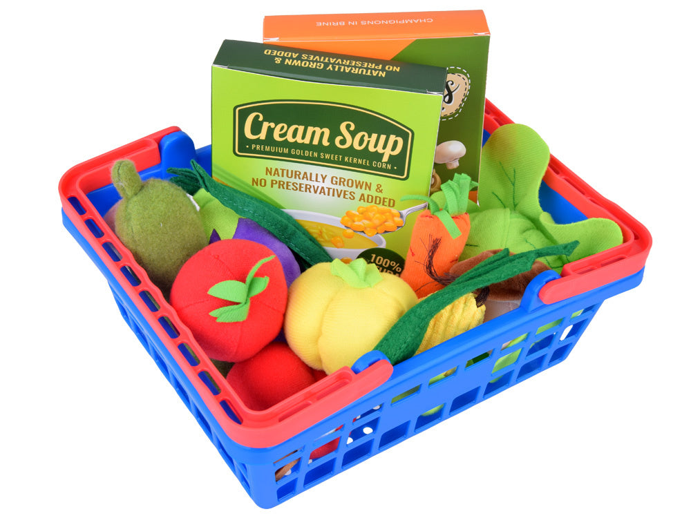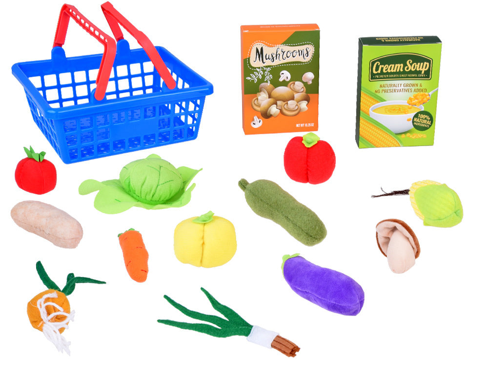 Vaikai mėgsta mėgdžioti savo tėvus, kai jie užsiima „suaugusiųjų reikalais“, pavyzdžiui, apsipirkinėja ar gamina maistą. Pristatome esminį šių žaidimų elementą - pirkinių krepšelį su minkštomis, žavingomis daržovėmis. Žaislas yra spalvingas ir estetiškas, jis tikrai sudomins bet kurį vaiką ir suteiks valandų valandas smagaus laiko.
