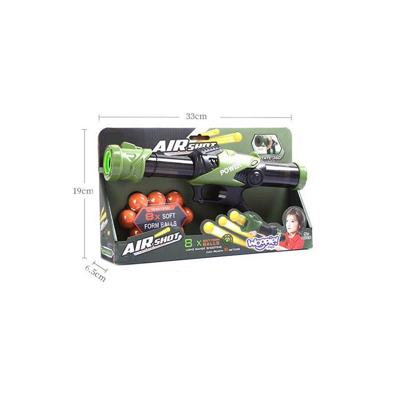 „WOOPIE“ prekės ženklo automatinis pistoletas su paleidimo funkcija yra smagi idėja jūsų vaikui. Šio žaislo dėka vaikas galės šaudyti ir numušti įvairius taikinius. Naudoti žaislą labai paprasta: užtaisyti paleidimo įrenginį, į vamzdį iš priekio įkišti putplasčio rutulius ir pumpuoti ginklą (siurbimo metu paleidimo priemonė šaudo kamuoliukus), o tada belieka stebėti, kiek toli rutuliai.