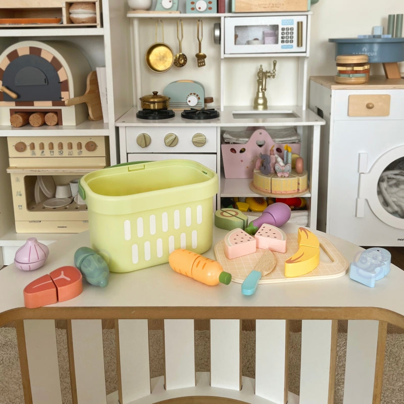Medinis maisto rinkinys pjaustymui iš Tooky Toy, puikiai tinkantis kūrybingam žaidimui virtuvėje. Šis išsamus rinkinys leidžia paruošti skanius patiekalus. Medinis maisto pjaustymo rinkinys ne tik ugdo vaikų vaizduotę, bet ir padeda lavinti rankų įgūdžius.