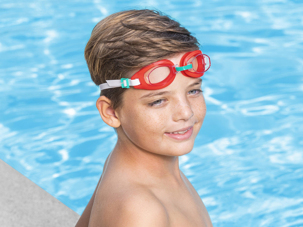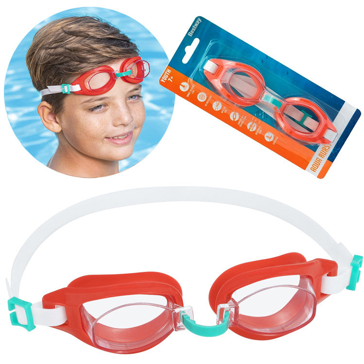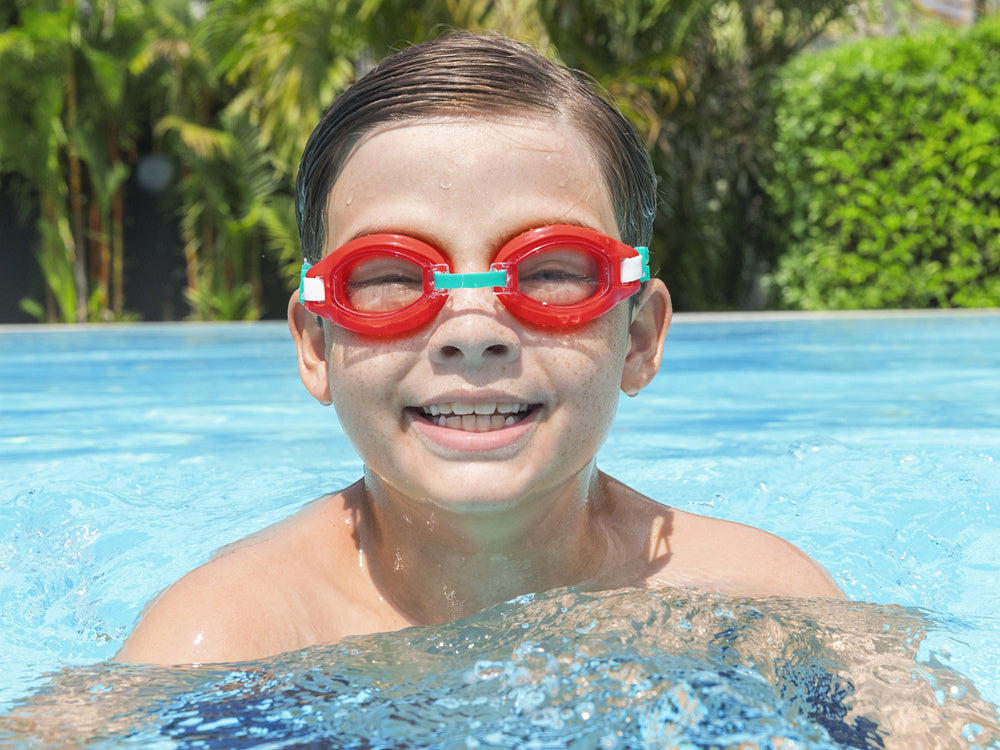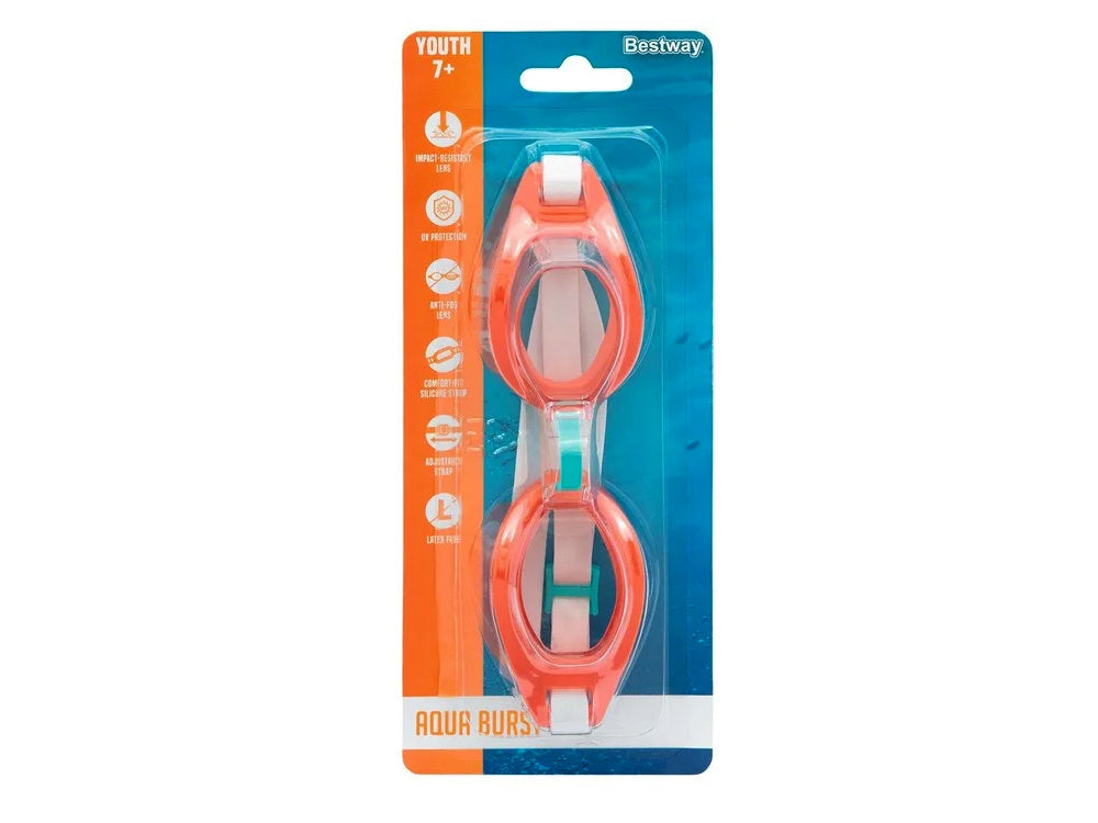 "Bestway® Aqua Burst" plaukimo akiniai tikrai pasiteisins per pirmąsias plaukimo pamokas. Jie buvo sukurti patogumui ir saugumui mažiausiems vaikams užsiimant plaukimu baseine. Akinių lęšiai pagaminti iš patvarios polikarbonato medžiagos, todėl jie yra atsparūs smūgiams, be to akiniai apsaugo nuo UV spindulių.