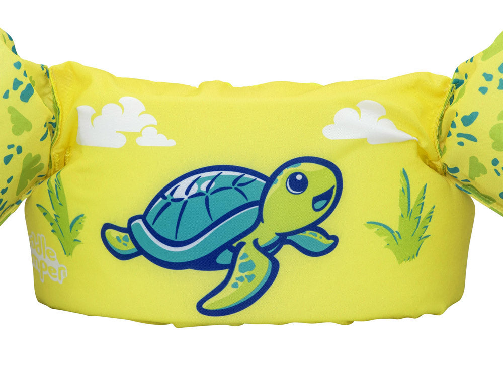 Pasiruošę vasarai, kupinai šypsenų ir linksmybių prie vandens? Susipažinkite su „Puddle Jumper®“ vaikiška plaukimo liemene vėžliuku su rankovėmis! Jūsų vaikas gali saugiai pliuškentis ir žaisti visą dieną, nesvarbu, ar jis dar tik mokosi vandens nuotykių, ar jau yra patyręs plaukikas.