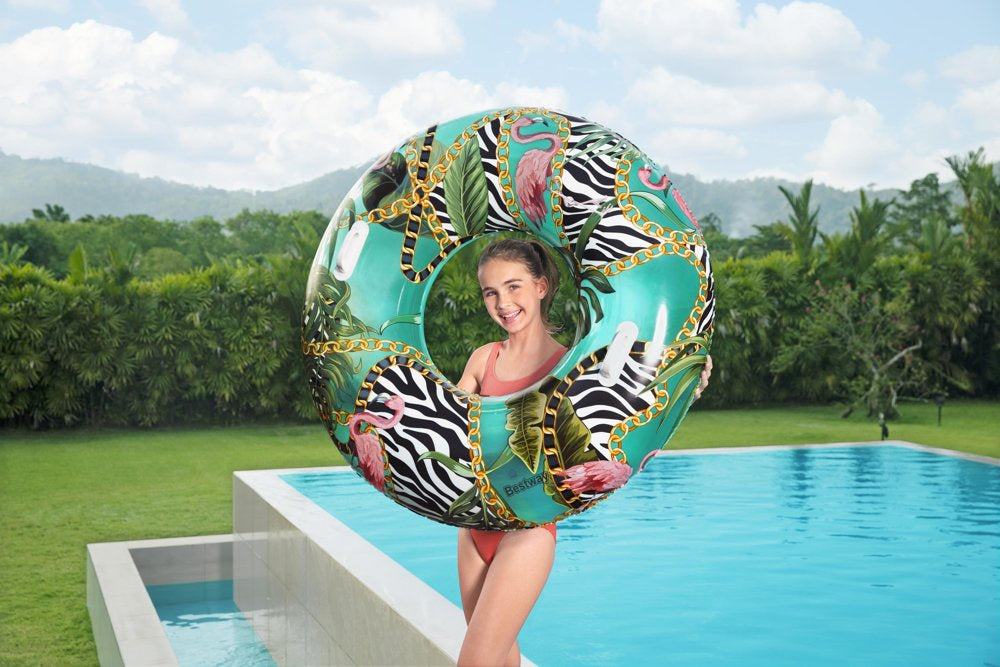 Einant prie vandens verta su savimi pasiimti visus būtinus baseino reikmenis, puikus priedas linksmybėms vandenyje bus ir pripučiamas plaukimo ratas. Ratas patogus ir stabiliai laikosi ant vandens. Jis pagamintas iš patvarios PVC medžiagos, atsparios pažeidimams ir saulės spinduliams.