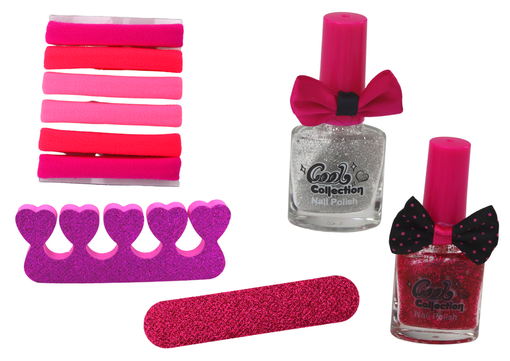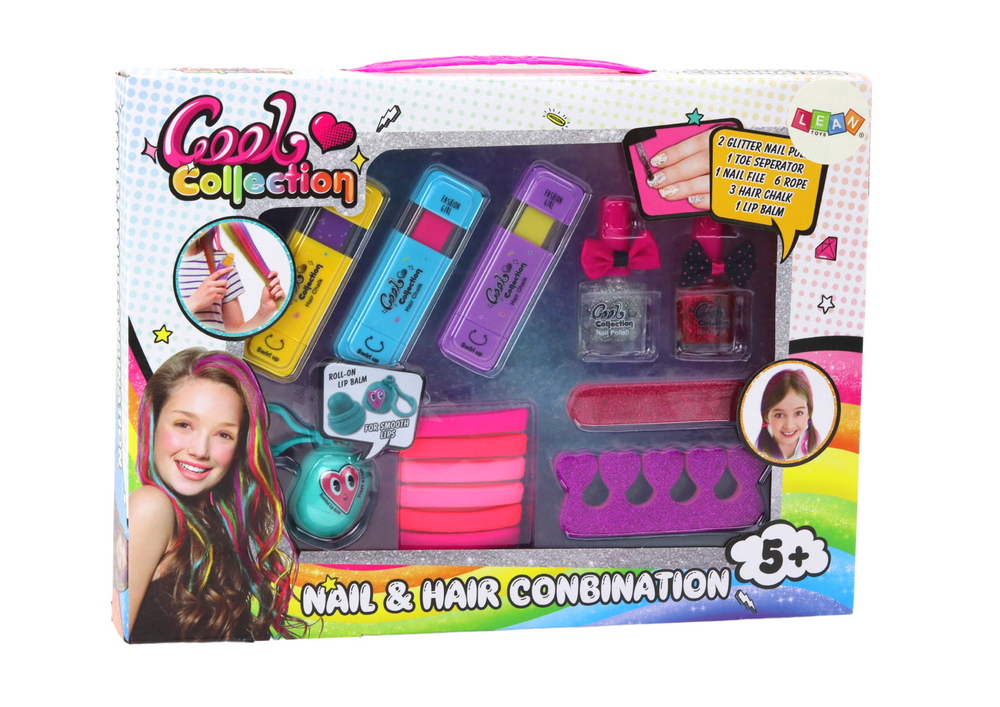 Grožio rinkinys - tikra šventė mažiesiems stilistams ir mados mylėtojams! Šis pilnas rinkinys suteikia begalę galimybių žaisti ir eksperimentuoti su savo stiliumi. Rinkinyje yra trys skirtingų spalvų plaukų dažymo kreidos, šešios plaukų gumytės, dar rasite nagų separatorių ir piltuvėlį, taip pat du blizgius sidabrinės ir rožinės spalvos lakus. Grožiui užbaigti rinkinyje taip pat yra lūpų balzamas ant raktų pakabuko.