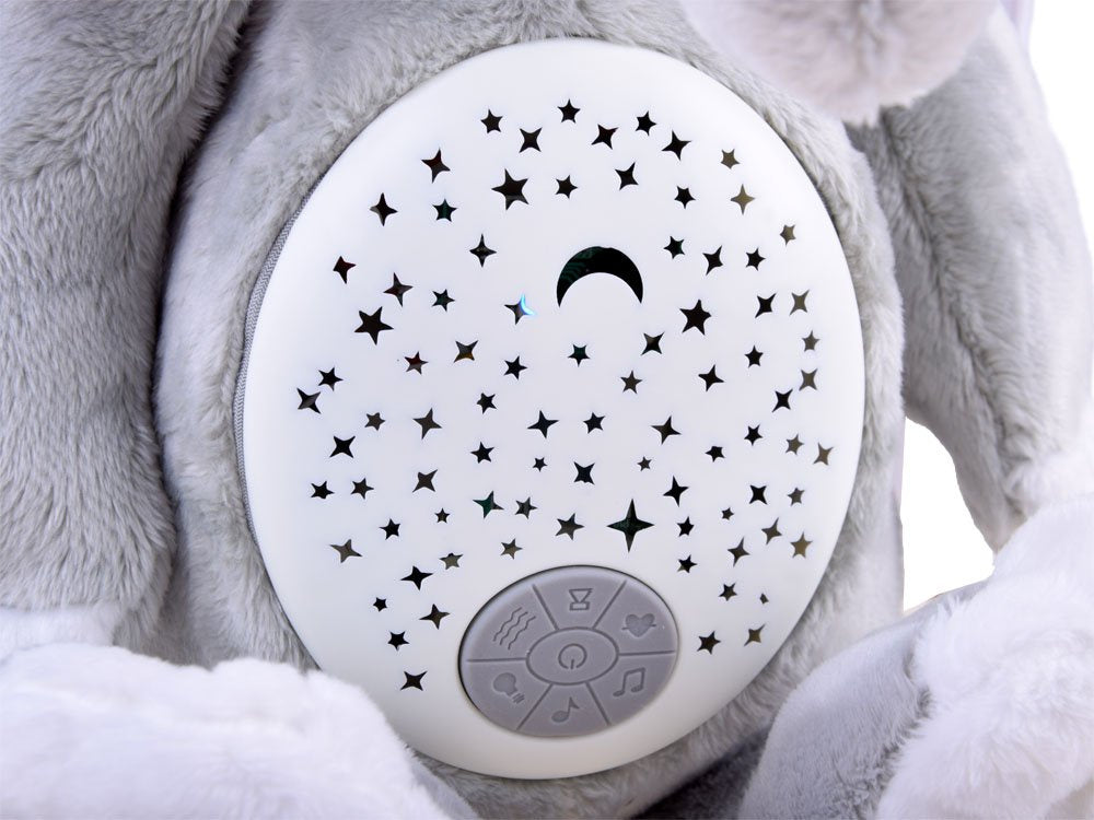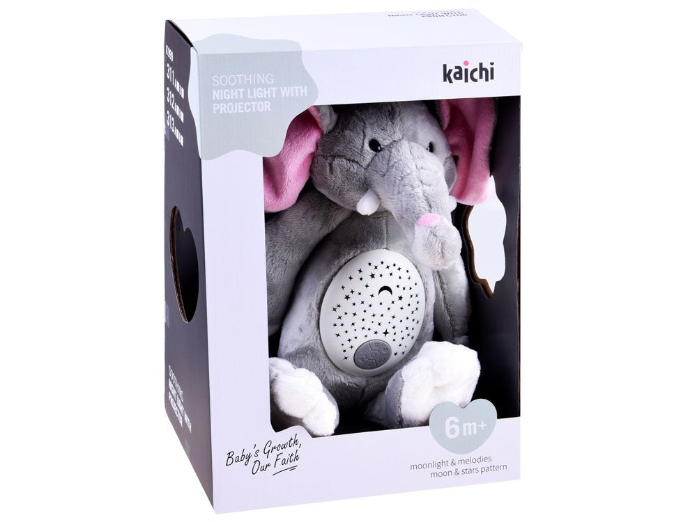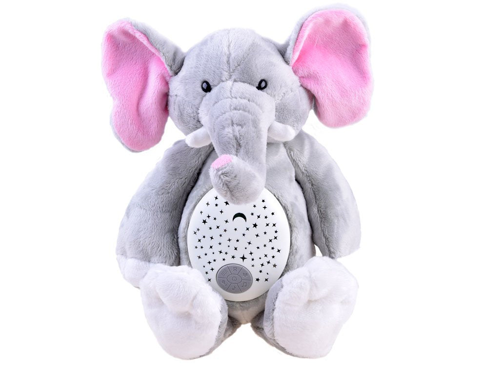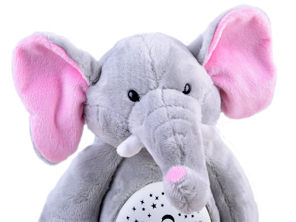 Pliušinis dramblys su šviesos ir garso efektais - tai pasiūlymas jauniausiems šeimos nariams. Žaislas pagamintas iš minkšto pilkos spalvos pliušo su rožinėmis ausimis. Pliušinis drambliukas pagamintas iš minkštos, malonios liesti medžiagos. Mielas žaislas pasiūtas labai kruopščiai ir atidžiai, jį norisi apkabinti! Drambliukas bus puikus gerų sapnų sergėtojas ir pabaisų iš spintos naikintojas.