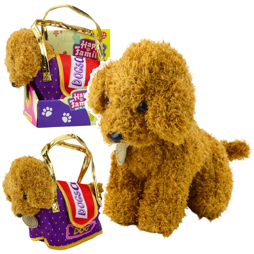 Pliušinis šuniukas pudelis su rankine, šviesiai rudas