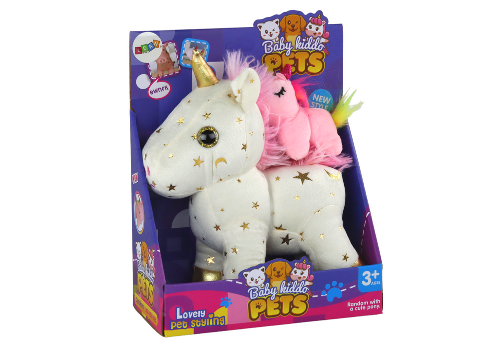 Pliušinis vienaragių su žvaigždutėmis rinkinys, baltas