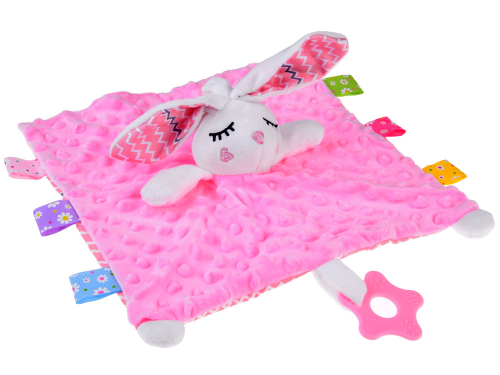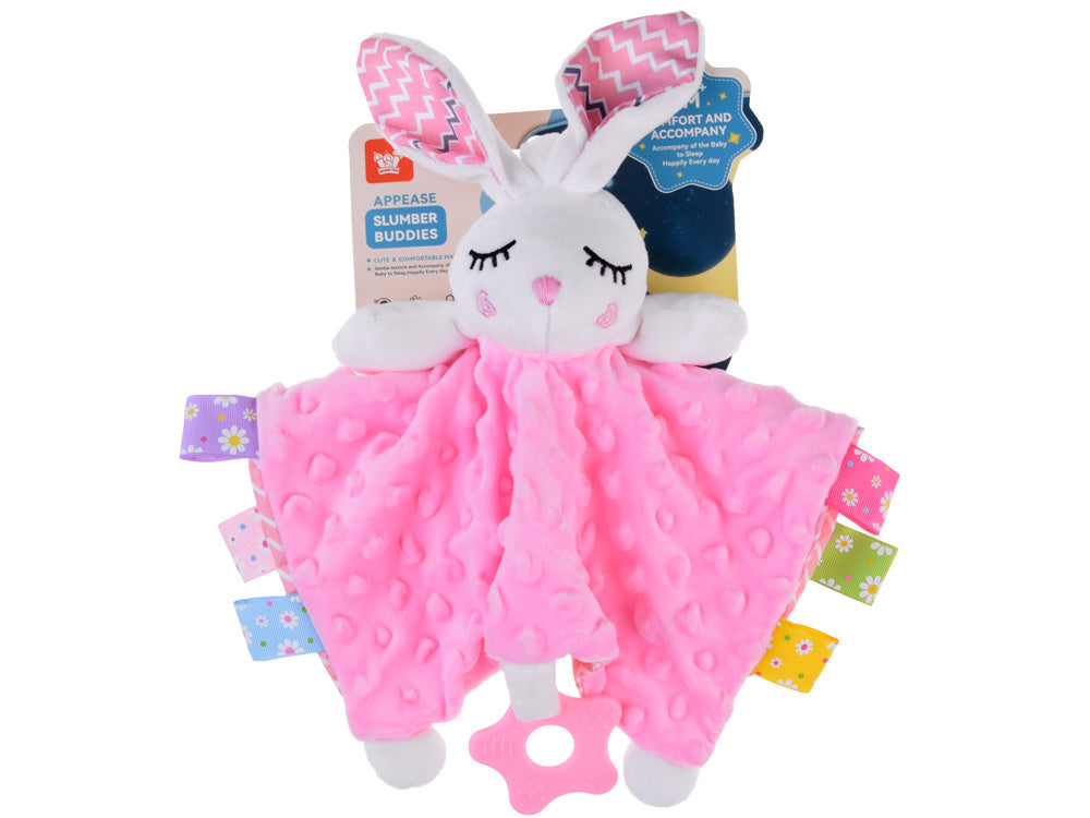 Pliušinis žaislas su pakabuku ir kramtuku - tai raminantis žaislas patiems mažiausiems vaikams. Minkštas pliušinis žaislas yra žavus, pagamintas labai kruopščiai ir estetiškai. Žaislas nuo pirmųjų kūdikystės dienų, jis gali būti šalia kaip guodėjas. Kūdikiai mėgsta domėtis dalimis, kurias galima paimti į rankas, minkyti, traukyti ir ragauti. Medžiaga, iš kurios pagamintas žaislas, yra maloni liesti ir visiškai saugi kūdikiui, be to, kad žaidimas būtų patrauklesnis, jo rankose paslėpti šiugždantis elementai, kurie taip pat sužadins kūdikio smalsumą.