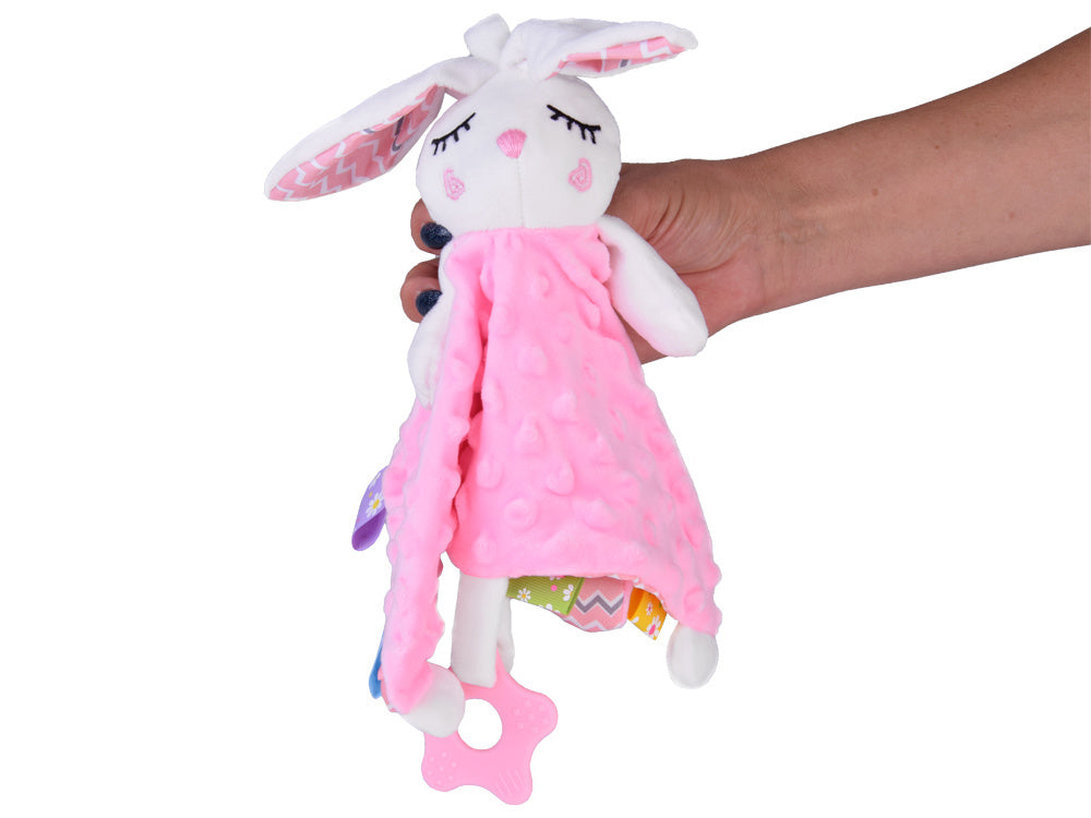 Pliušinis žaislas su kramtuku ir pakabuku, zuikis